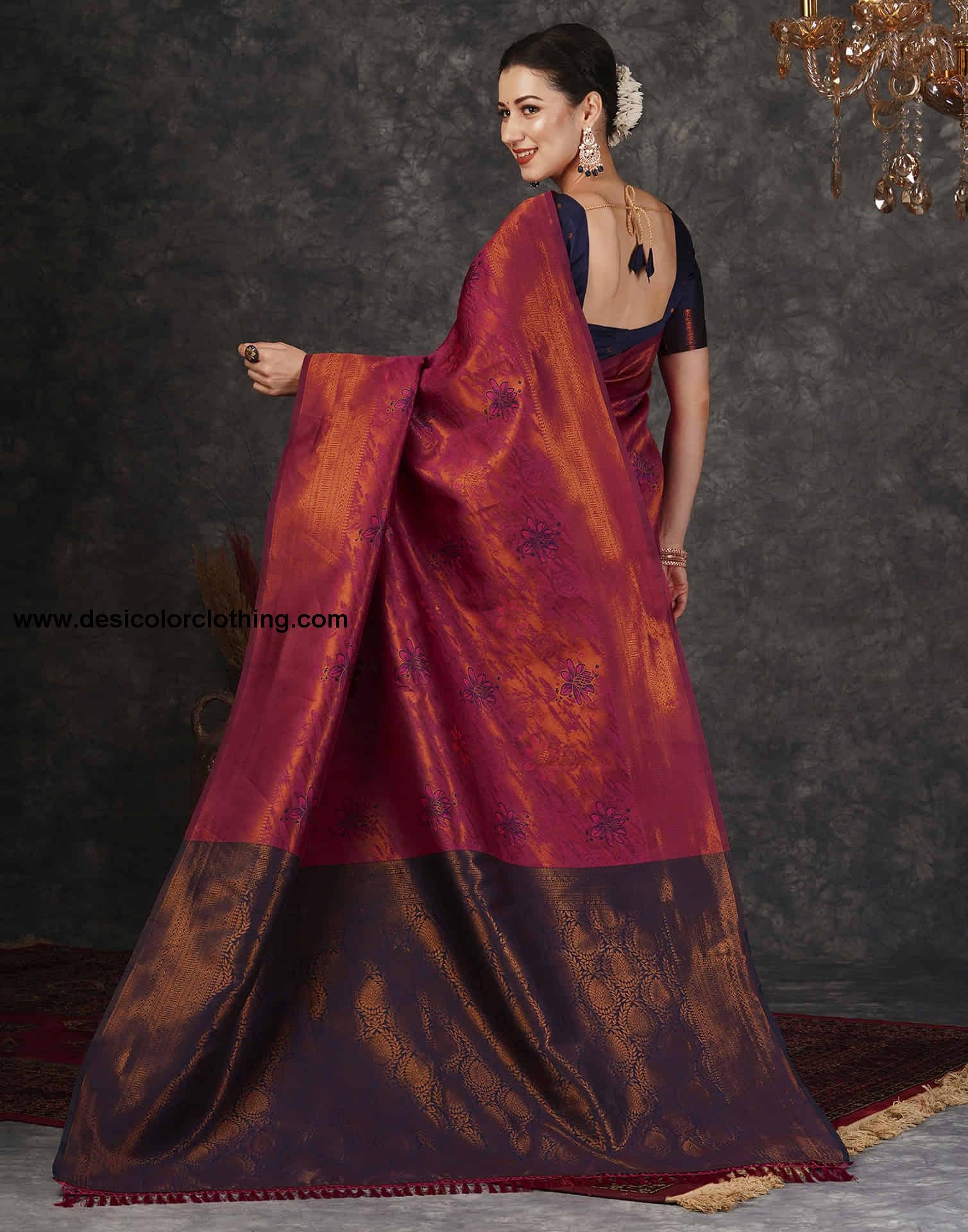 Saree Color:Dark Pink, Navy Blue, Golden Type:Banarasi