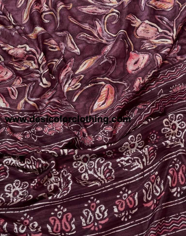 Blouse Color:Dark Purple Blouse Fabric:Dola Silk Blouse Length:0.70 Mtr Blouse Work:Floral Printed Saree Color:Dark Purple, White, Light Pink Saree Fabric:Dola Silk Saree Length:5.50 Mtr Saree Work:Floral Printed