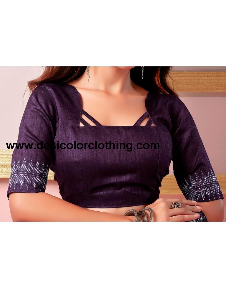 Blouse Color:Deep Purple Blouse Fabric:Bhagalpuri Silk Blouse Length:0.70 Mtr Blouse Work:Plain, Hot Fixing Border Saree Color:Deep Purple Saree Fabric:Shimmer Chiffon Saree Length:5.10 Mtr Saree Work:Plain, Hot Fixing Border