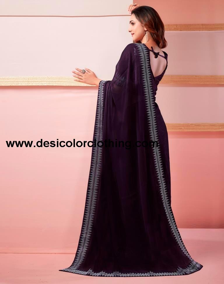 Deep Purple Chiffon Plain Saree
