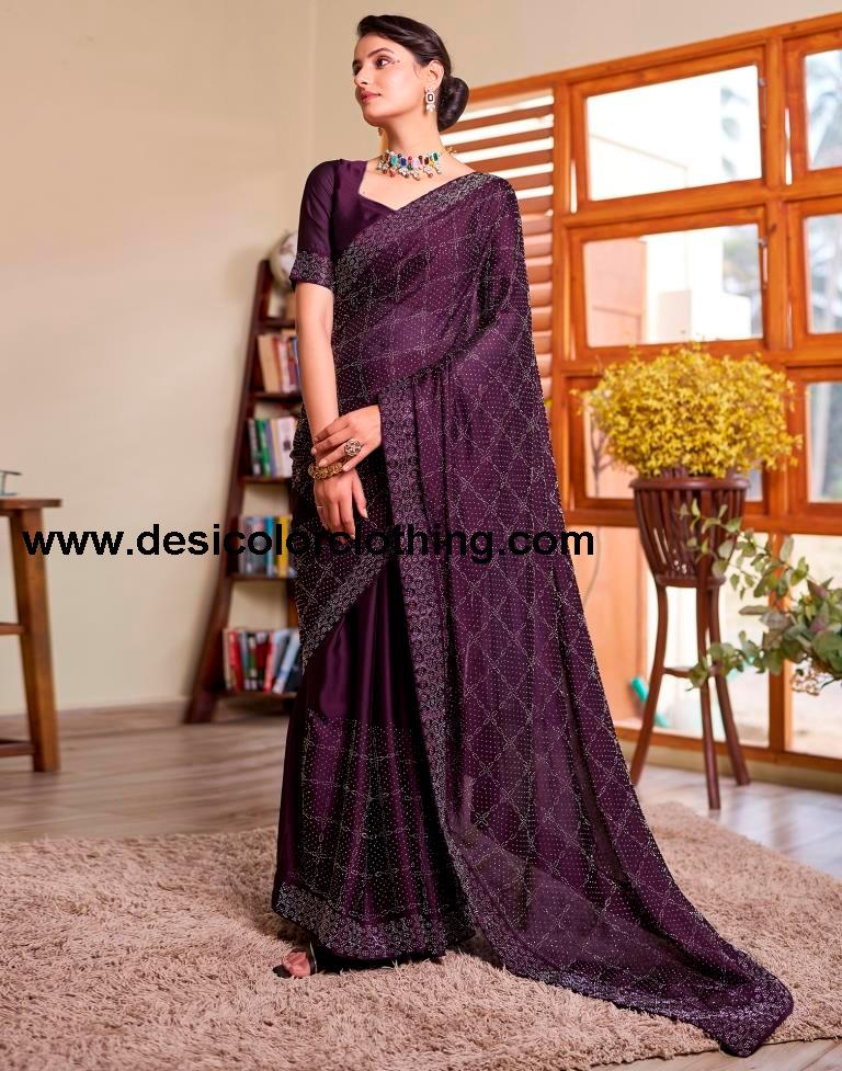 Blouse Color:Deep Purple Blouse Fabric:Georgette Blouse Length:0.80 Mtr Blouse Work:Plain, Hot Fixing Border Saree Color:Deep Purple Saree Fabric:Georgette Saree Length:5.50 Mtr Saree Work:Plain, Hot Fixing
