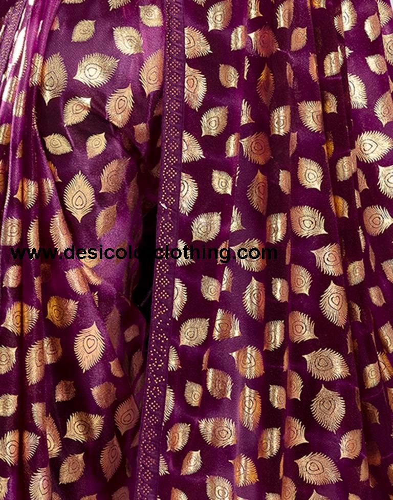 Blouse Color:Deep Purple Blouse Fabric:Benglori Silk ( Art Silk) Blouse Length:0.80 Mtr Blouse Work:Plain, Hot Fixing Border Saree Color:Deep Purple, Golden Saree Fabric:Lycra Saree Length:5.50 Mtr Saree Work:Printed, Foil Print, Hot Fixing Border