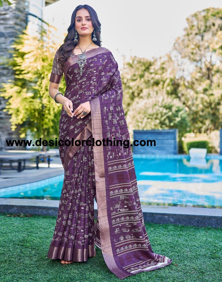 Deep Purple Silk Printed Saree