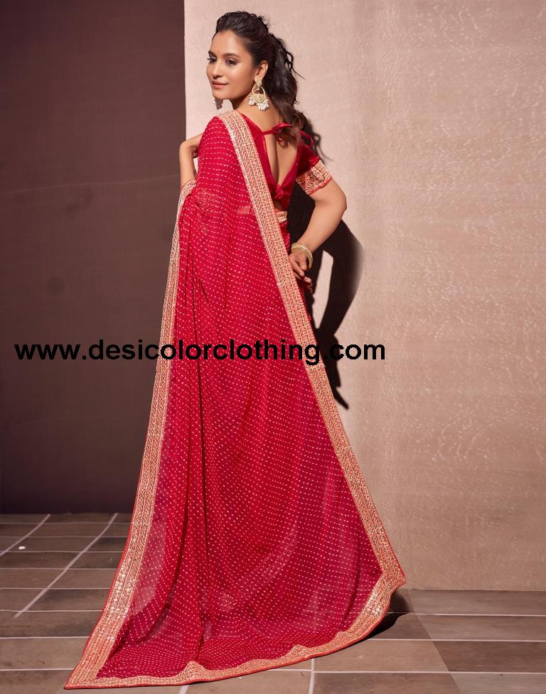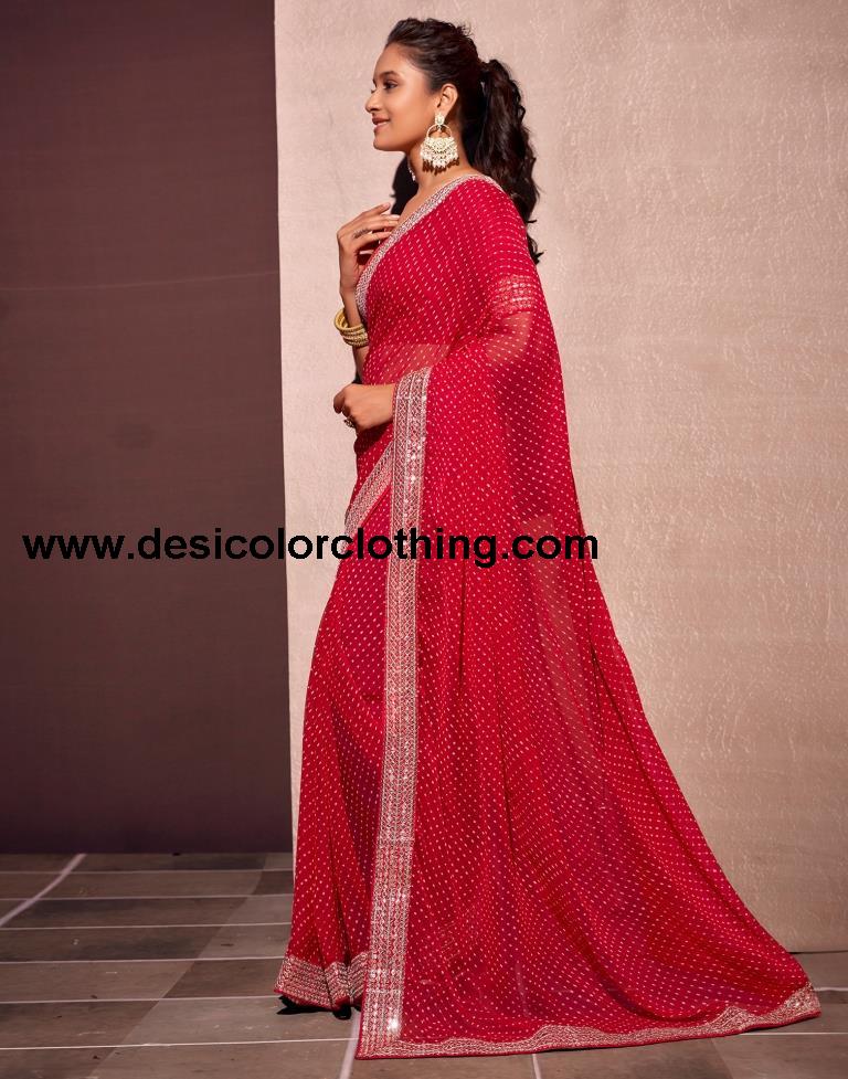 Blouse Color:Deep Red Blouse Fabric:Bhagalpuri Silk Blouse Length:0.70 Mtr Blouse Work:Plain, Sequence Embroidery Lace Saree Color:Deep Red, White Saree Fabric:Georgette Saree Length:5.30 Mtr Saree Work:Printed, Sequence Embroidery Lace