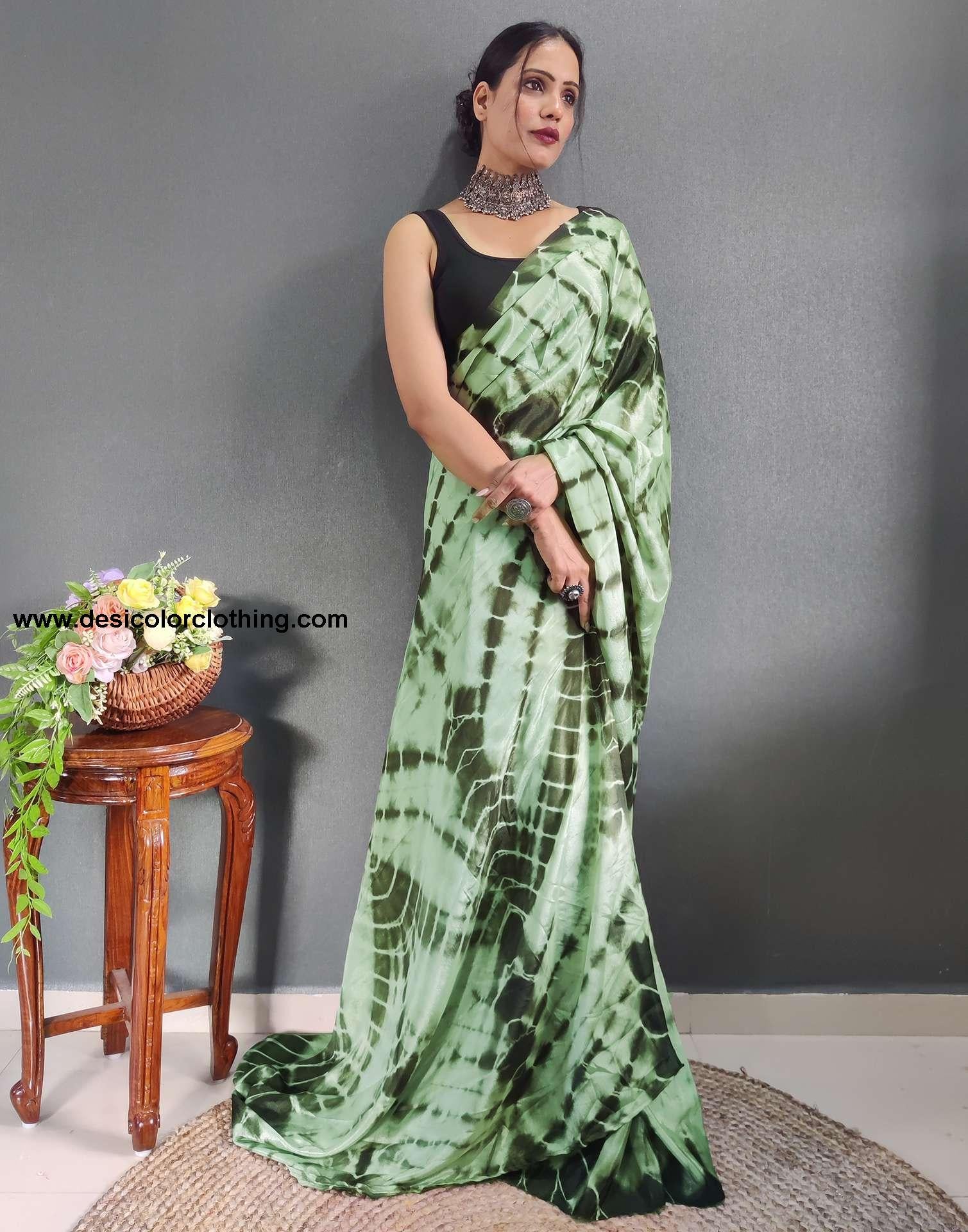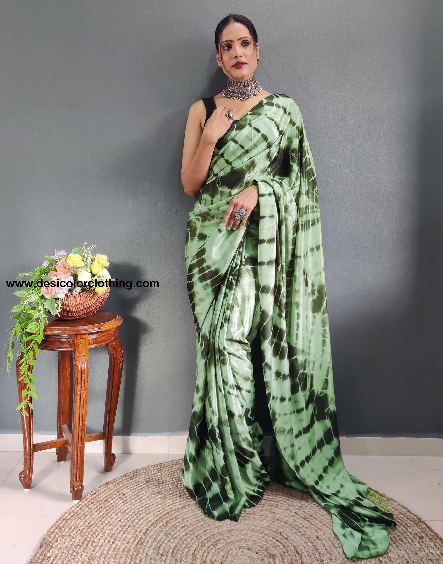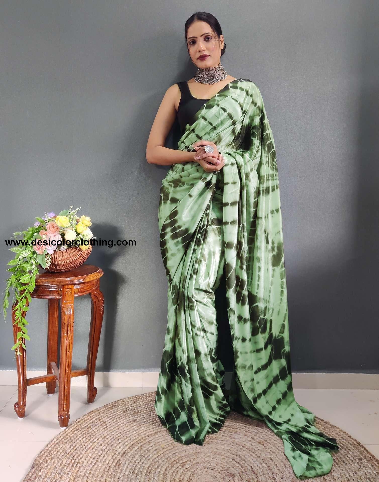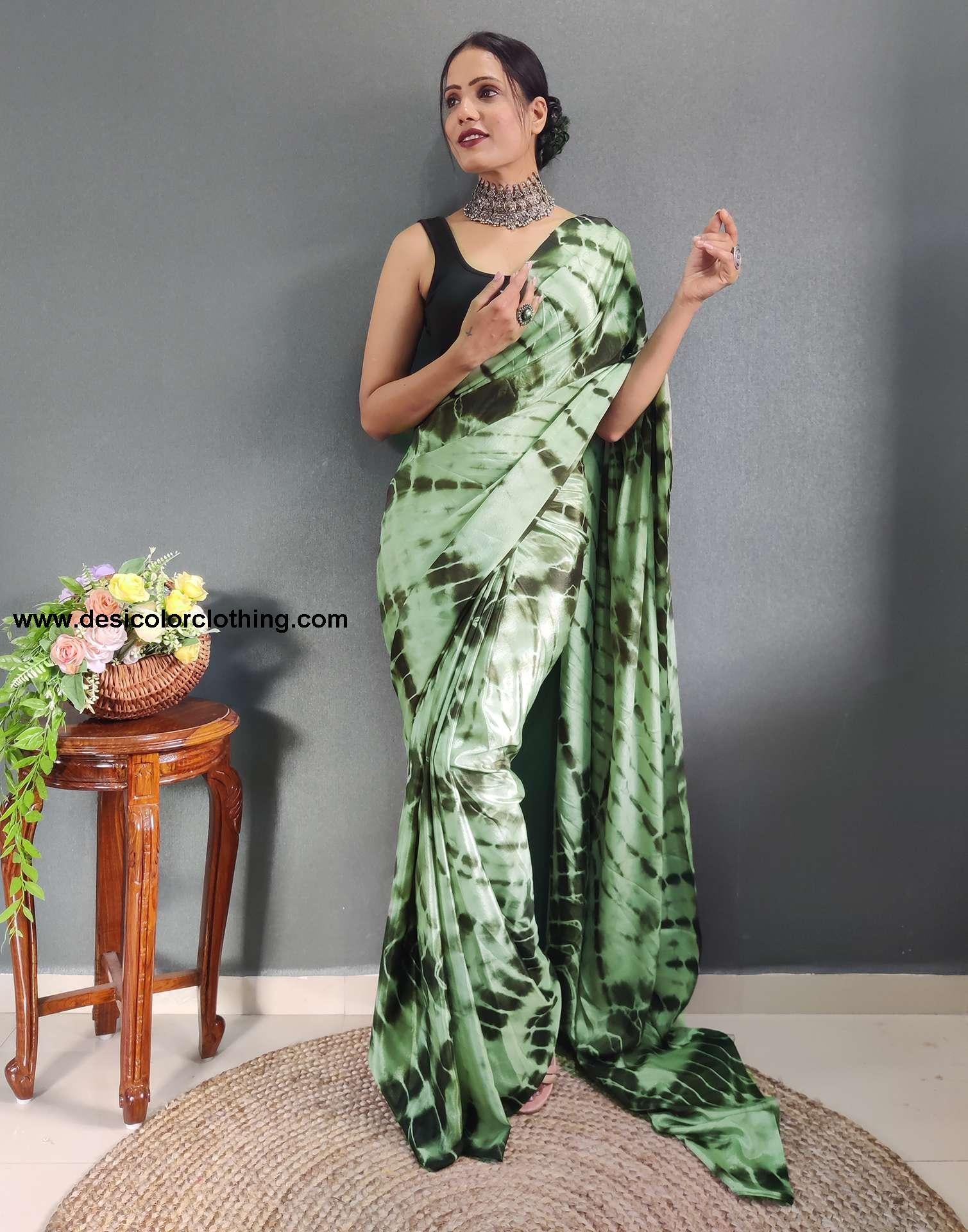 Blouse Color:Black Blouse Fabric:Banglori Silk Blouse Length:5.50 Mtr Blouse Work:Plain Saree Color:Dull Green Saree Fabric:Chinon Silk Saree Length:5.50 Mtr Saree Work:Printed