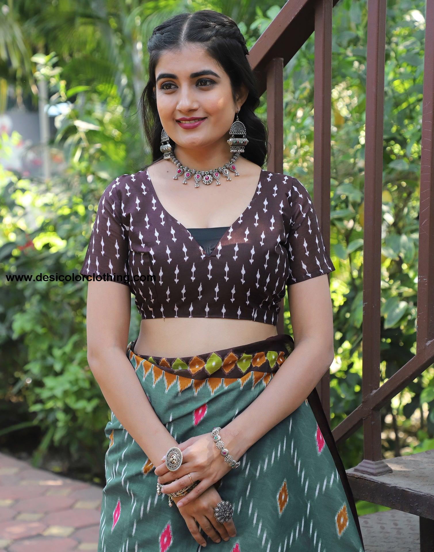 Blouse Color:Dark Wine, White Blouse Fabric:Printed Blouse Length:0.80 Mtr Blouse Work:Printed Saree Color:Dusty Green, Multicoloured Saree Fabric:Cotton Saree Length:5.50 Mtr Saree Work:Printed