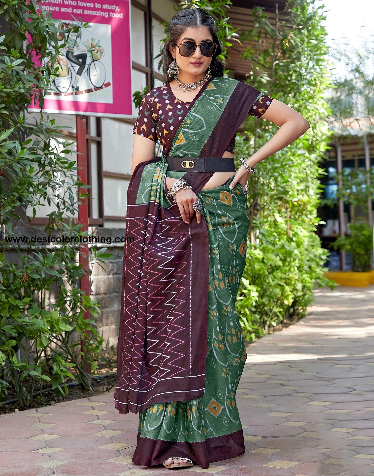 Blouse Color:Wine, Multi Blouse Fabric:Printed Blouse Length:0.80 Mtr Blouse Work:Printed Saree Color:Dusty Green, Wine Saree Fabric:Cotton Saree Length:5.50 Mtr Saree Work:Printed