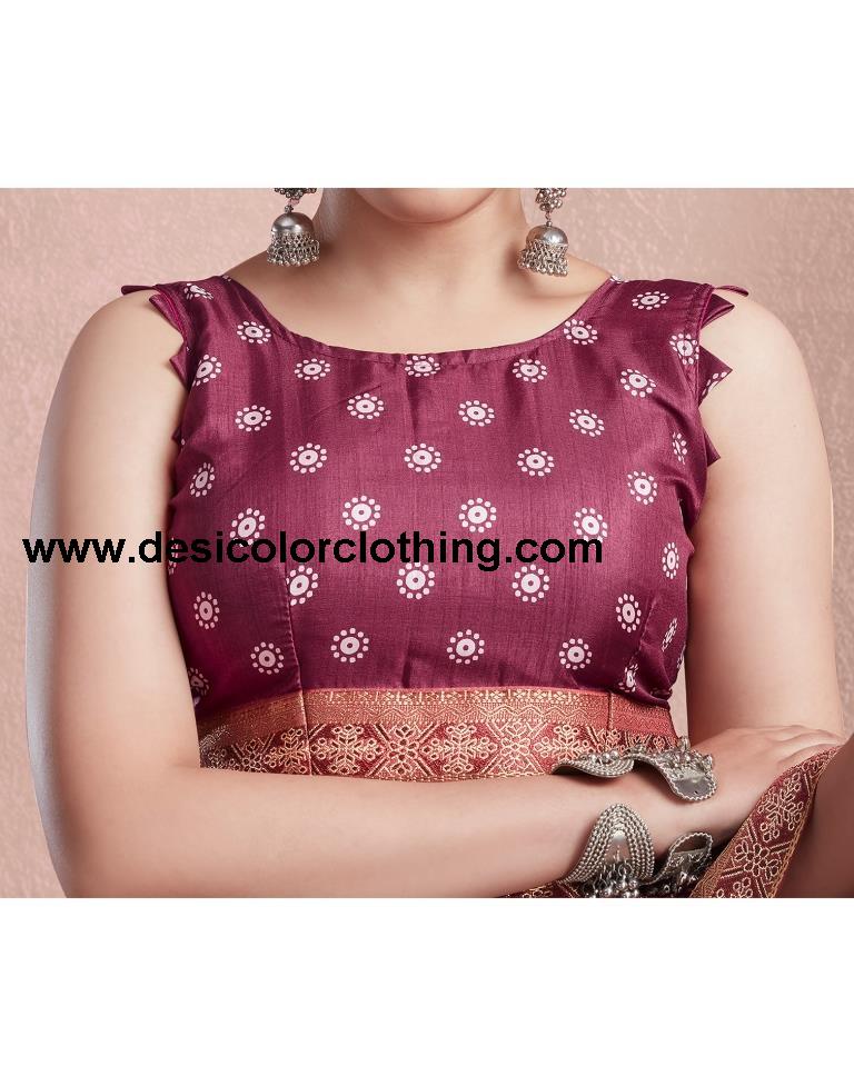 Blouse Color:Dusty Maroon, Cream Blouse Fabric:Dola Silk Blouse Length:0.80 Mtr Blouse Work:Printed, Lace Saree Color:Dusty Maroon, Cream, Yellow Saree Fabric:Dola Silk Saree Length:5.50 Mtr Saree Work:Geometric Printed, Lace