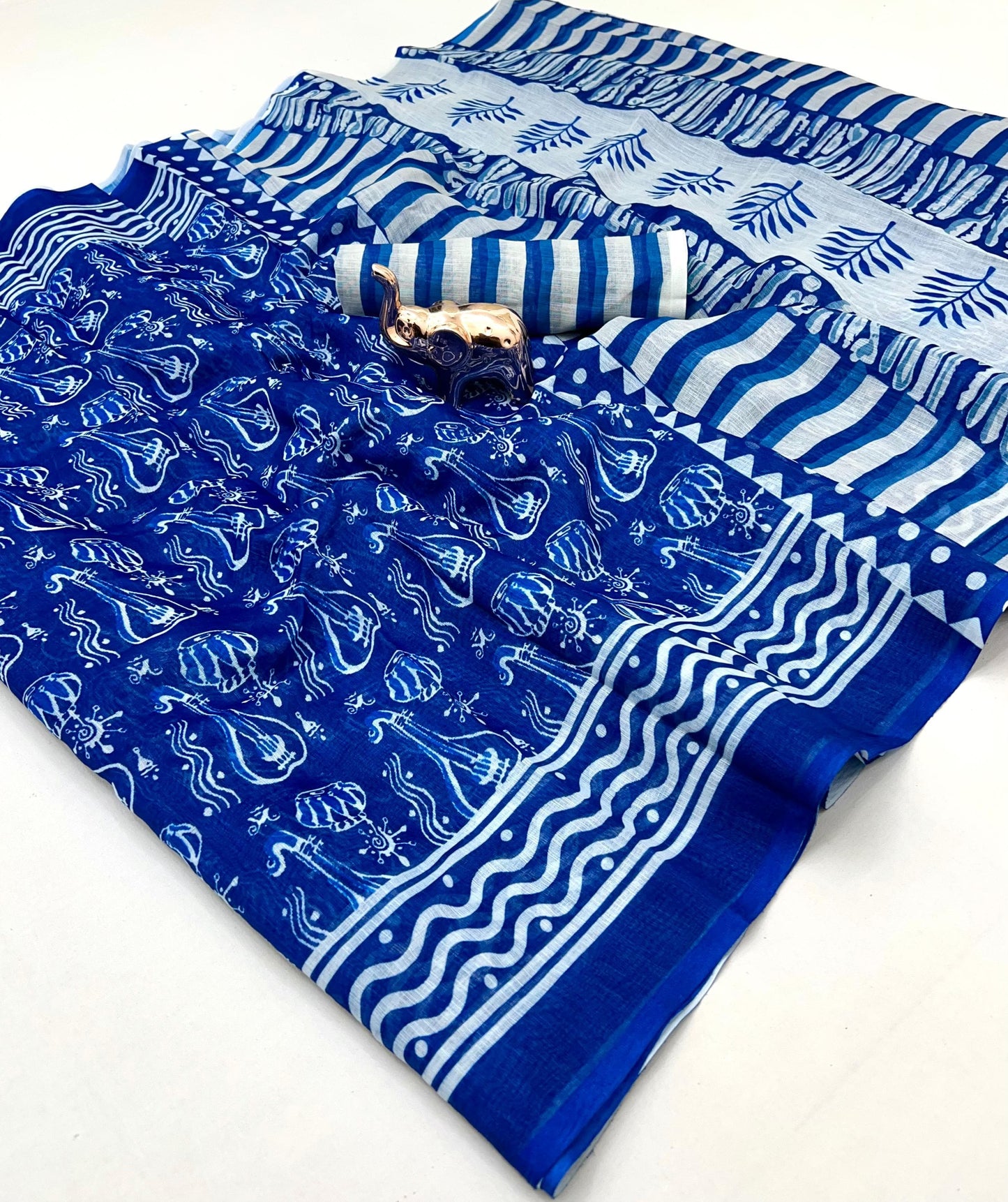 Elegant Floral Designer Saree in Soft Lenin Fabric