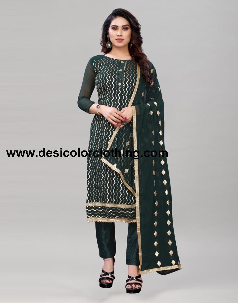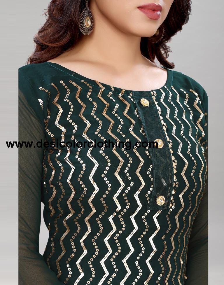 Amazing Dark Green Georgette Sequence Work Unstitched Salwar Suit