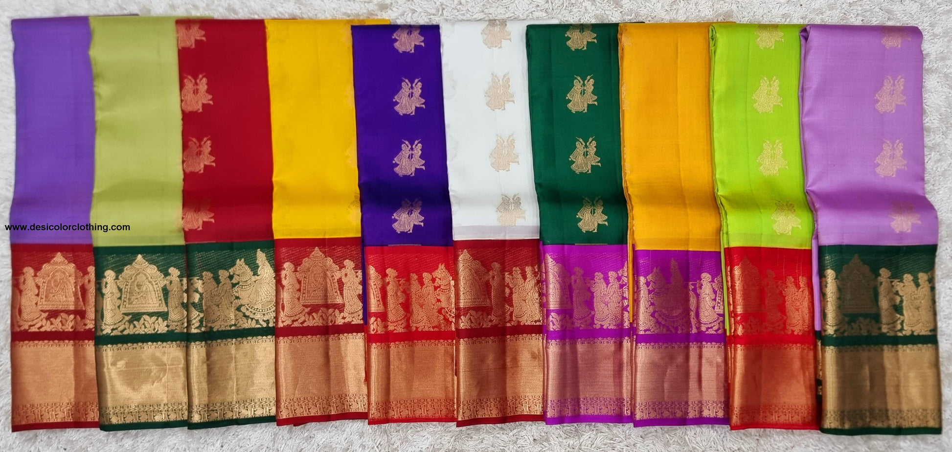 Description: Explore the timeless beauty of our Kanchipuram 100% Pure Handwoven Silk Saree. Featuring a premium quality big border Korvai pattern