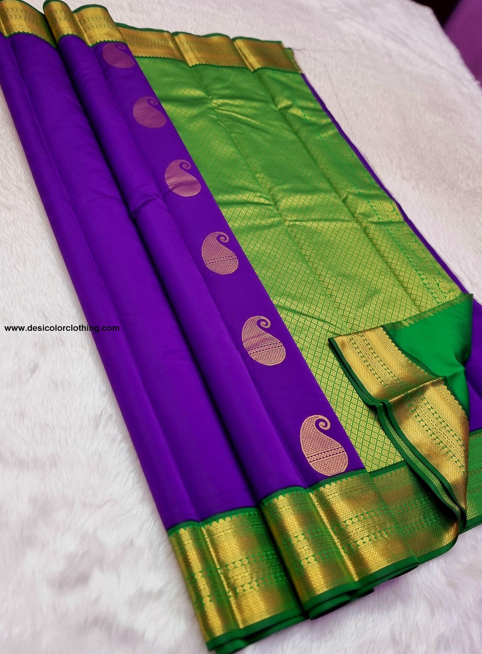 Description: Enjoy the elegance of the Kanchipuram Korvai Pattern Fancy Buttas Blended Silk Saree. This super-quality