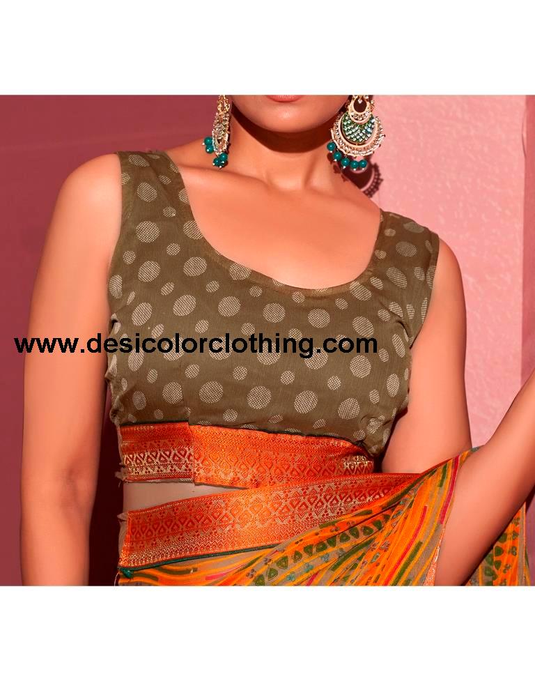 Blouse Color:Light Brown, Off White Blouse Fabric:Chiffon Blouse Length:0.80 Mtr Blouse Work:Geometric Printed, Lace Saree Color:Orange, Light Brown, Multi Saree Fabric:Chiffon Saree Length:5.50 Mtr Saree Work:Geometric Printed, Lace, Tassels