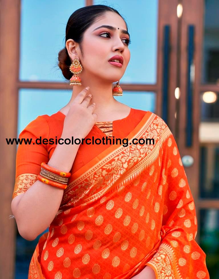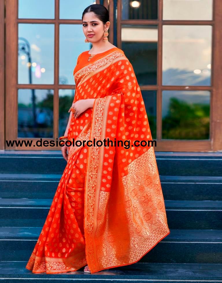 Blouse Color:Orange Blouse Fabric:Silk Blouse Length:0.80 Mtr Blouse Work:Plain, Jacquard Border (Dual Tone) Saree Color:Orange Saree Fabric:Silk Saree Length:5.50 Mtr Saree Work:Plain, Jacquard (Dual Tone)