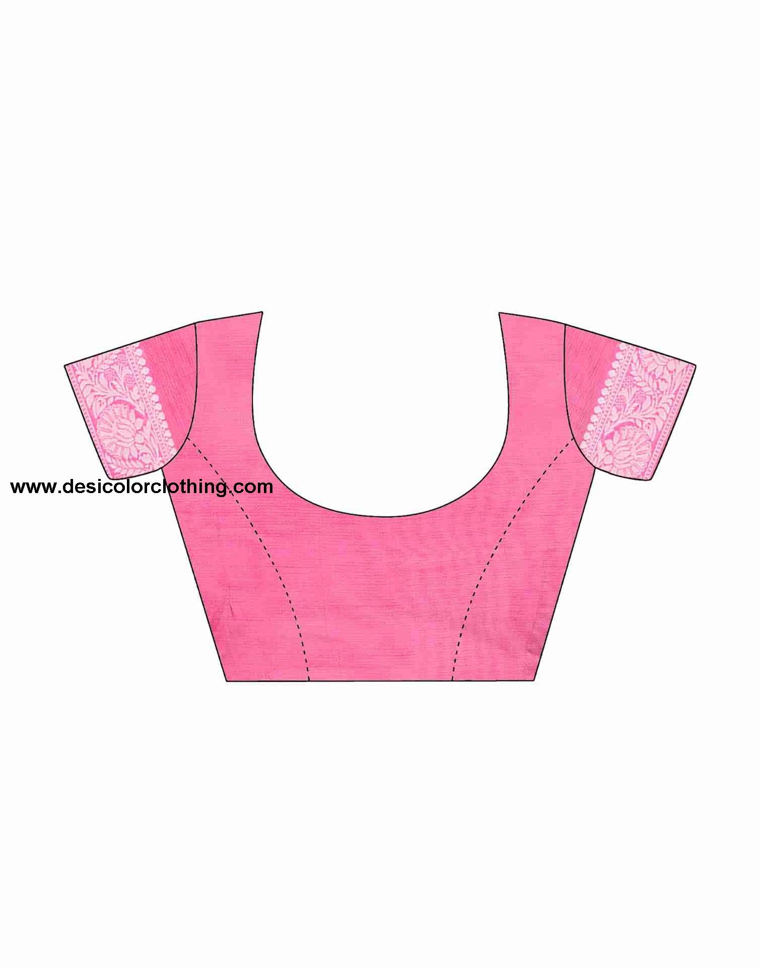 Blouse Color:Pink Blouse Fabric:Cotton Blend Blouse Length:0.80 Mtr Blouse Work:Plain, Woven Border Saree Color:Pink, Silver Saree Fabric:Cotton Blend Saree Length:5.50 Mtr Saree Work:Plain, Woven