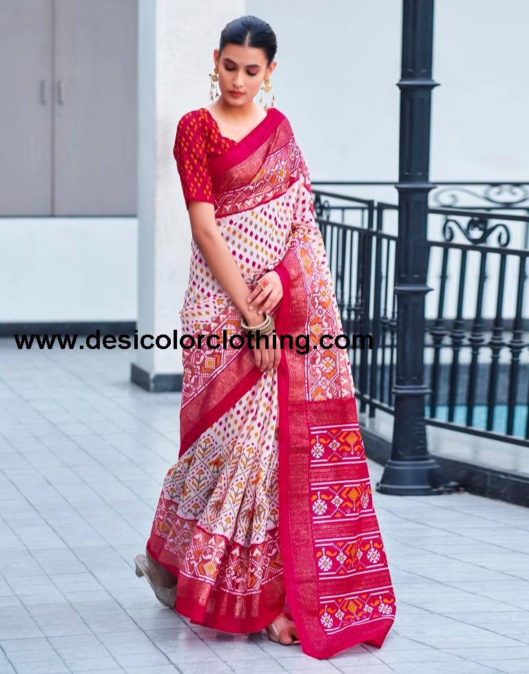 Blouse Color:Pink, Turmeric Blouse Fabric:Cotton Blouse Length:0.80 Mtr Blouse Work:Printed Saree Color:Pink, Multicoloured Saree Fabric:Cotton Saree Length:5.50 Mtr Saree Work:Printed, Foil Print
