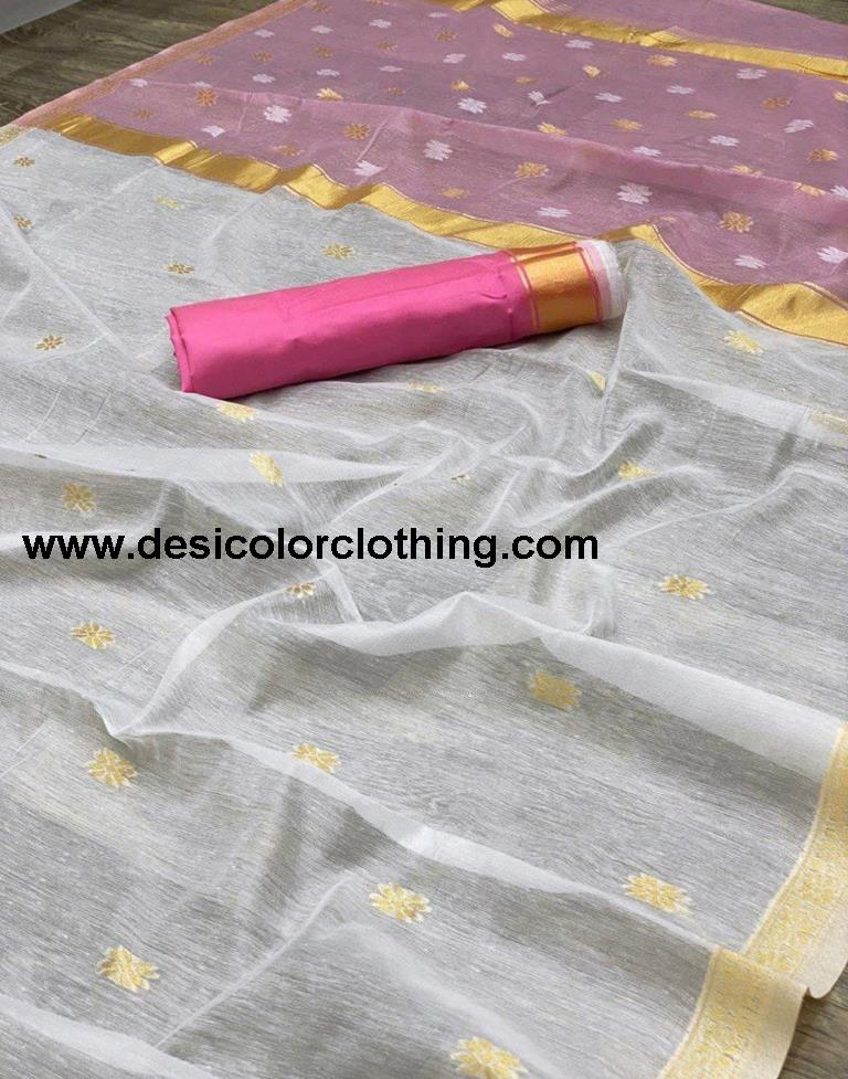 Blouse Color:Light Pink Blouse Fabric:Poly Cotton Blouse Length:0.80 Mtr Blouse Work:Solid, Golden Patta Saree Color:Pink Saree Fabric:Poly Cotton Saree Length:5.50 Mtr Saree Work:Weaving
