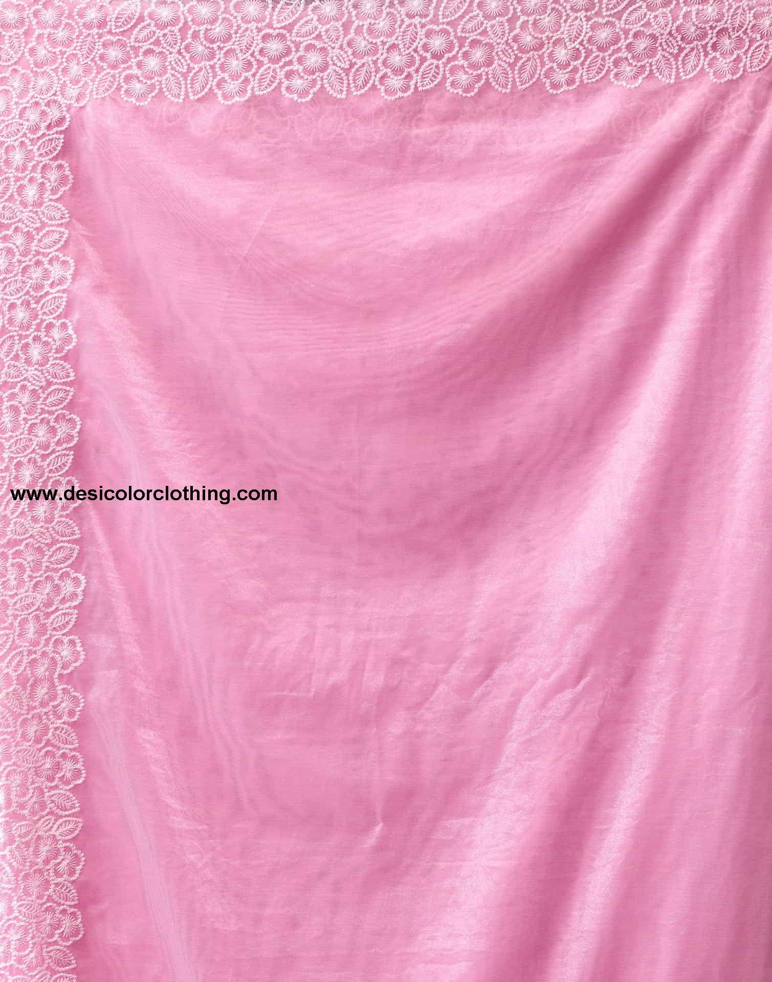 Blouse Color:Pink, White Blouse Fabric:Organza Blouse Length:0.80 Mtr Blouse Work:Plain, Embroidery Saree Color:Pink, White Saree Fabric:Organza Saree Length:5.50 Mtr Saree Work:Plain, Embroidery Border Type:Embroidery