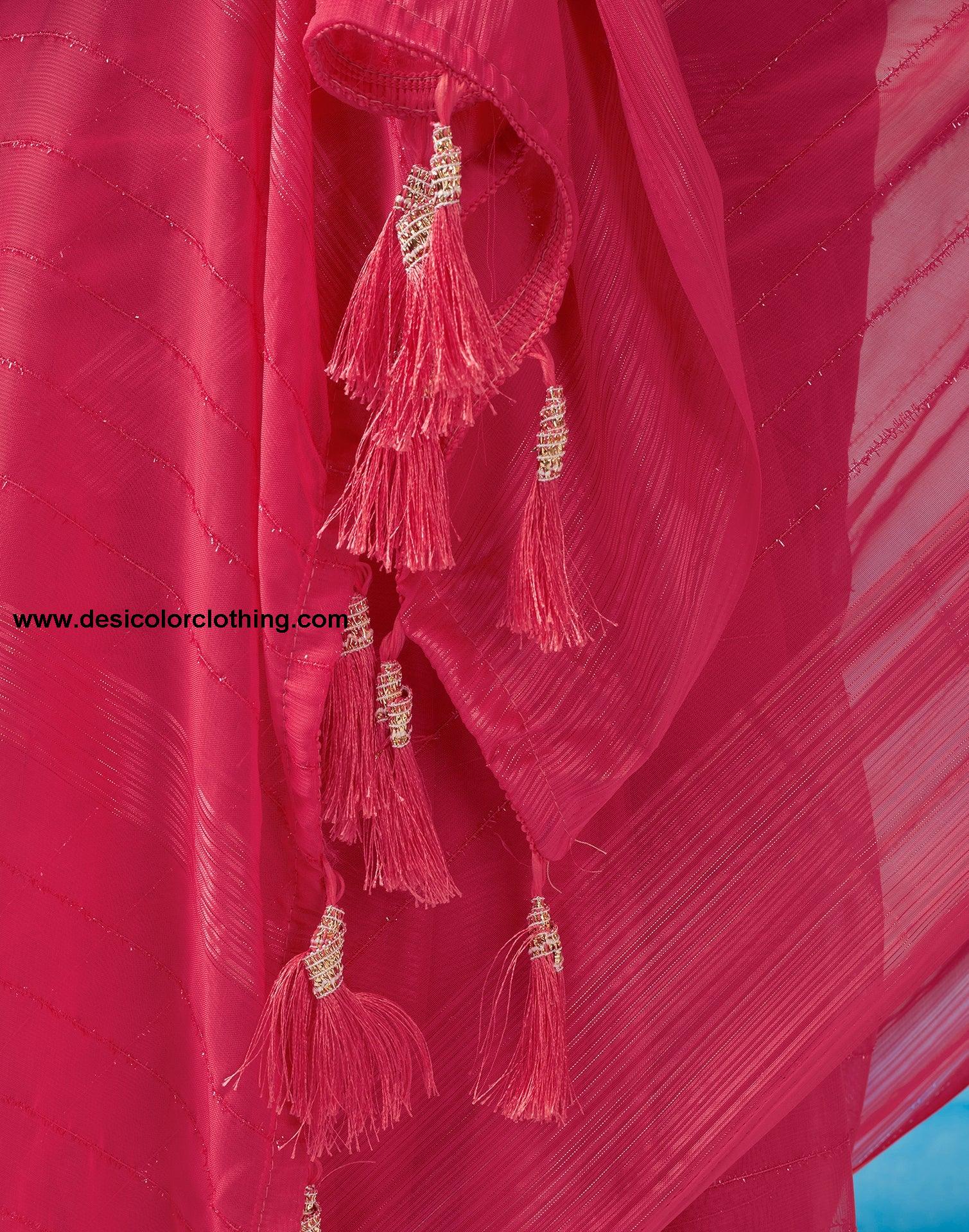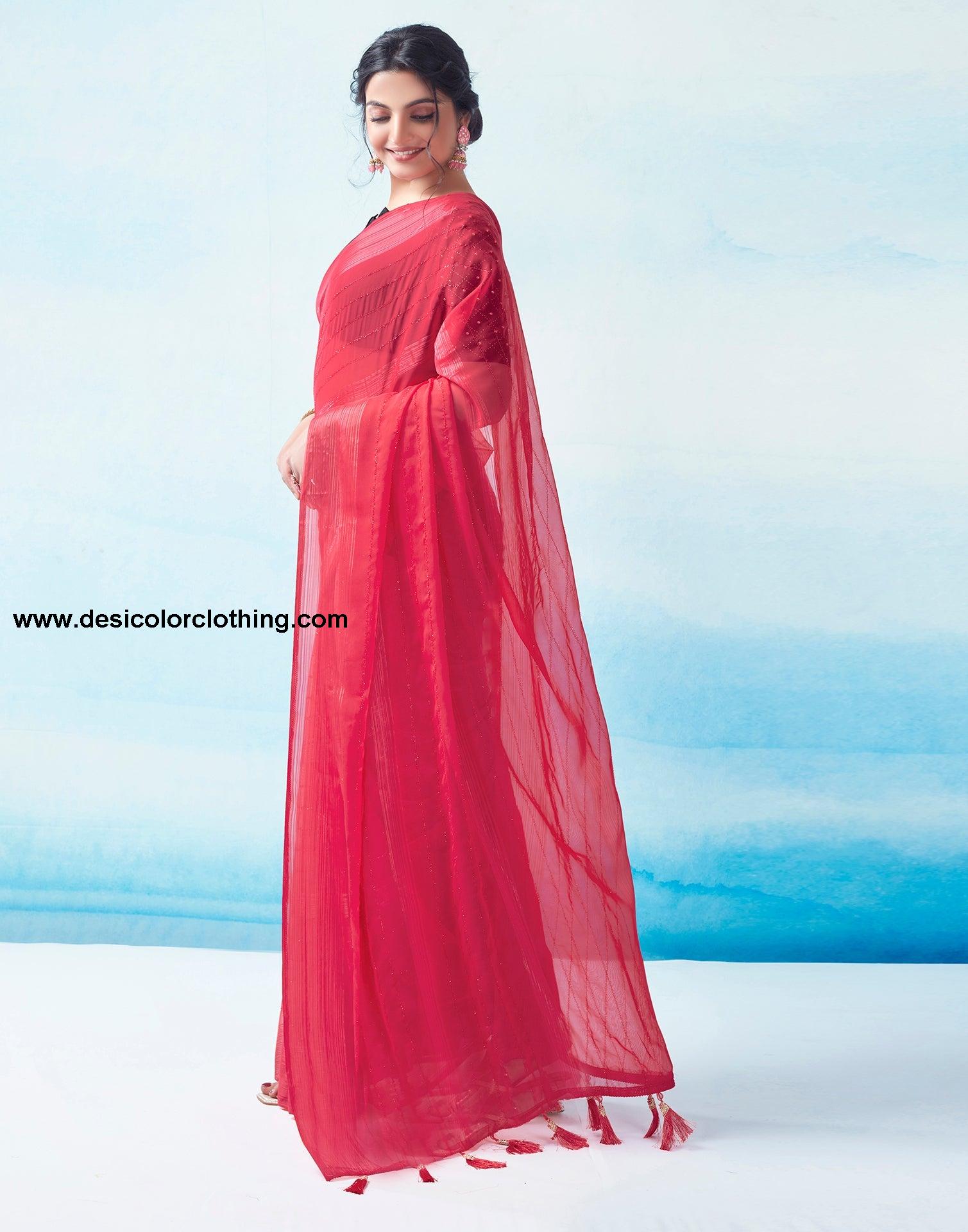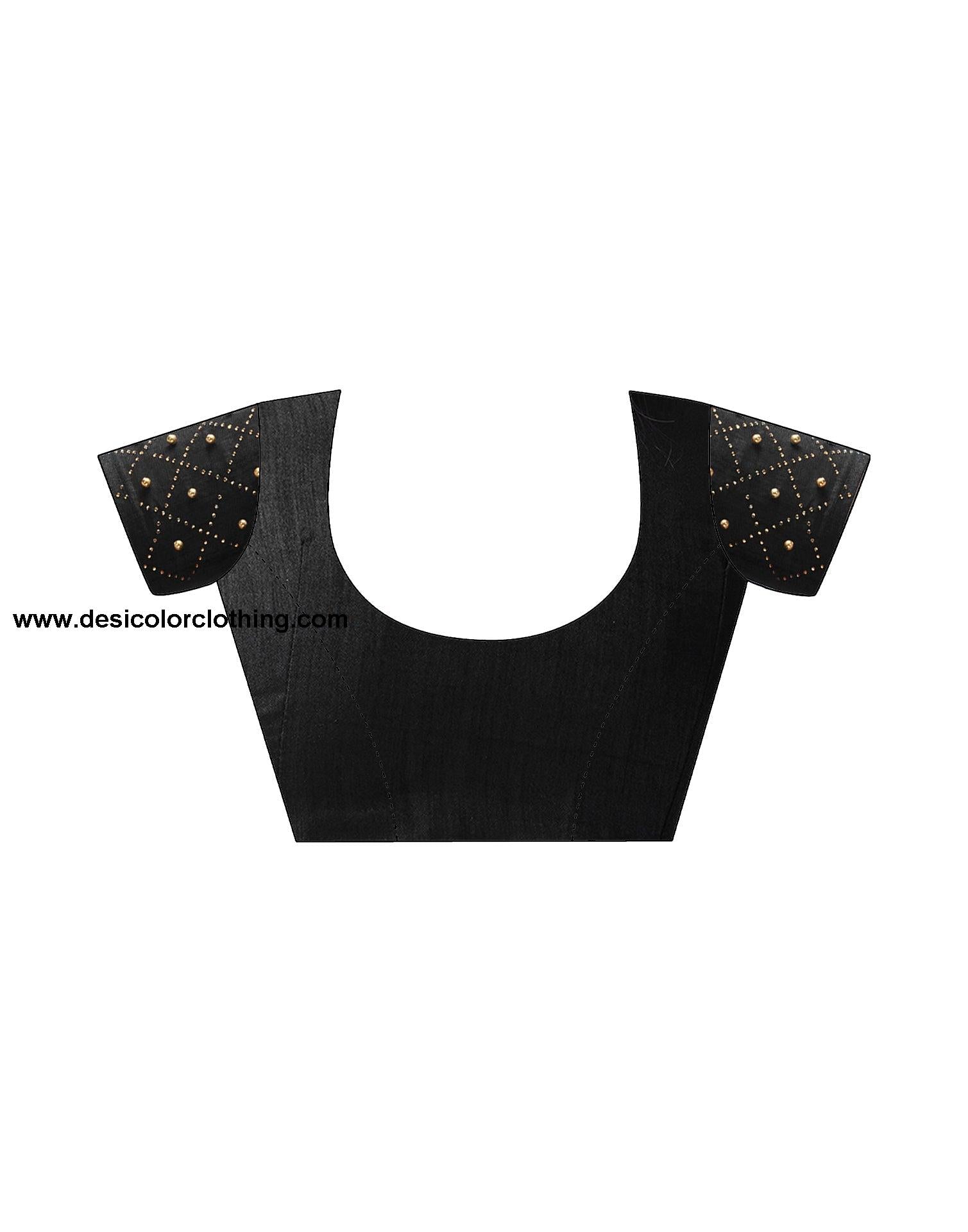 Blouse Color:Black Blouse Fabric:Plain Blouse Length:0.80 Mtr Blouse Work:Plain, Hot Fixing, Pearl Work Saree Color:Pink Saree Fabric:Georgette Saree Length:5.50 Mtr Saree Work:Plain