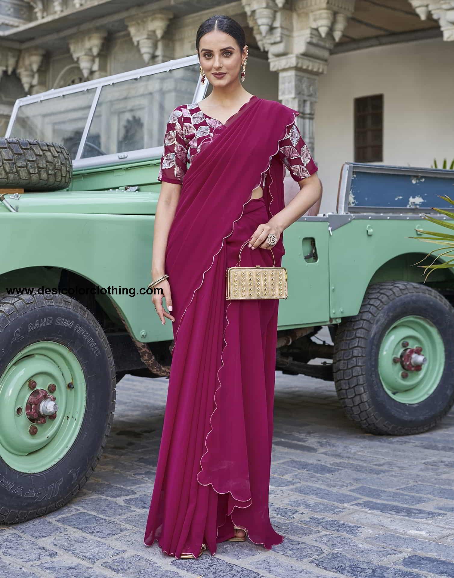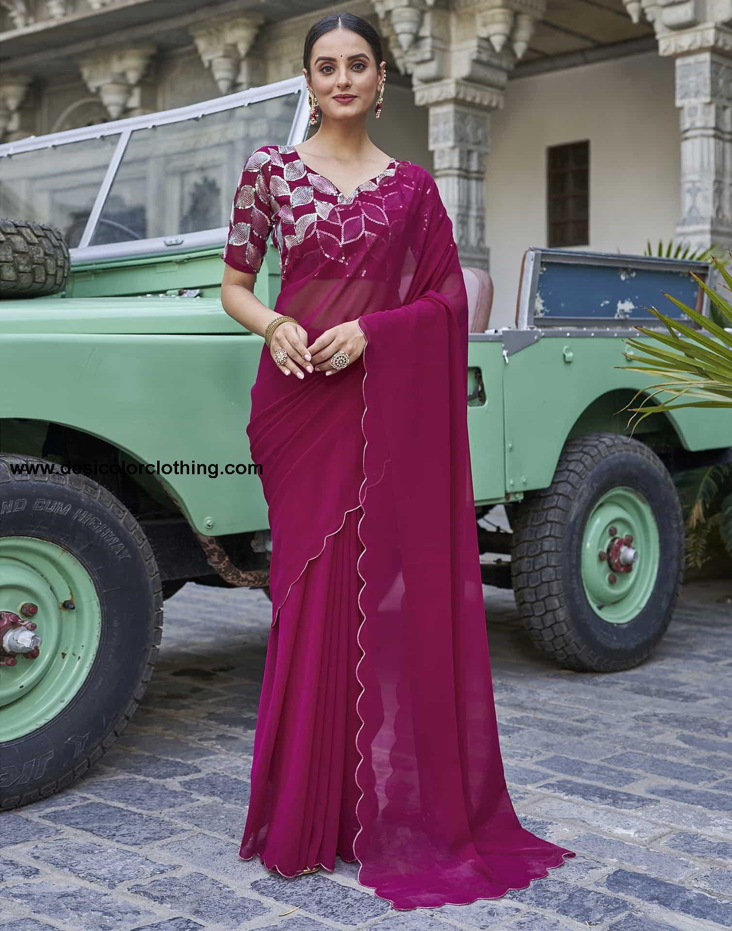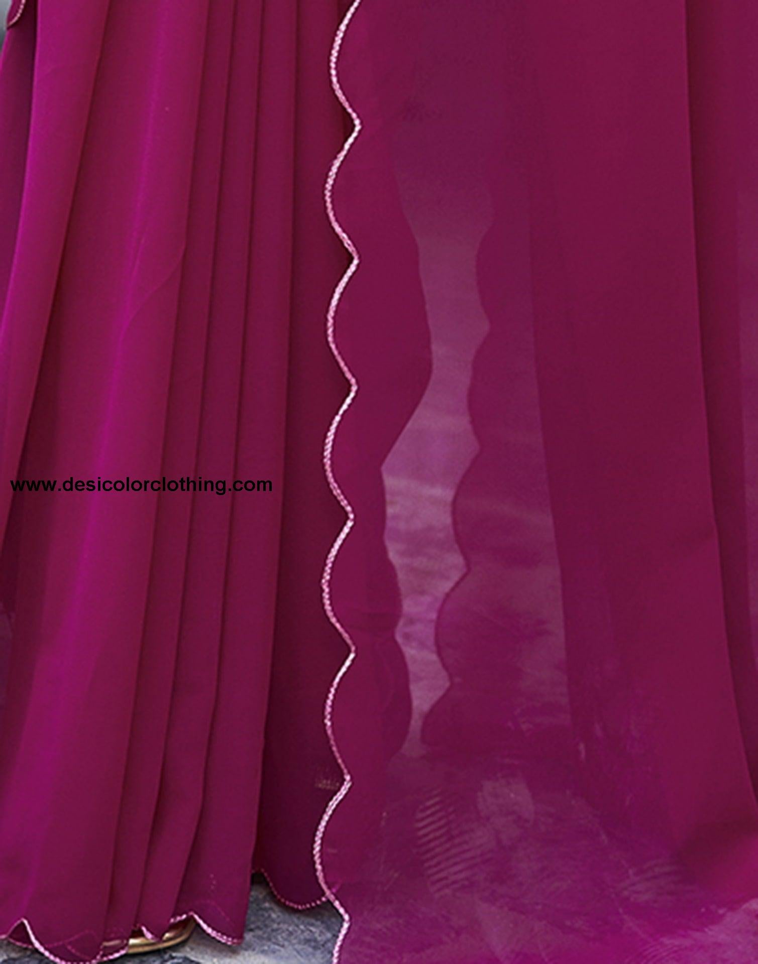 Blouse Color:Deep Pink, Multi Blouse Fabric:Georgette Blouse Length:0.80 Mtr Blouse Work:Plain, Sequence Embroidery Work Saree Color:Deep Pink Saree Fabric:Georgette Saree Length:5.30 Mtr Saree Work:Plain, Cut Work Border Type:Plain
