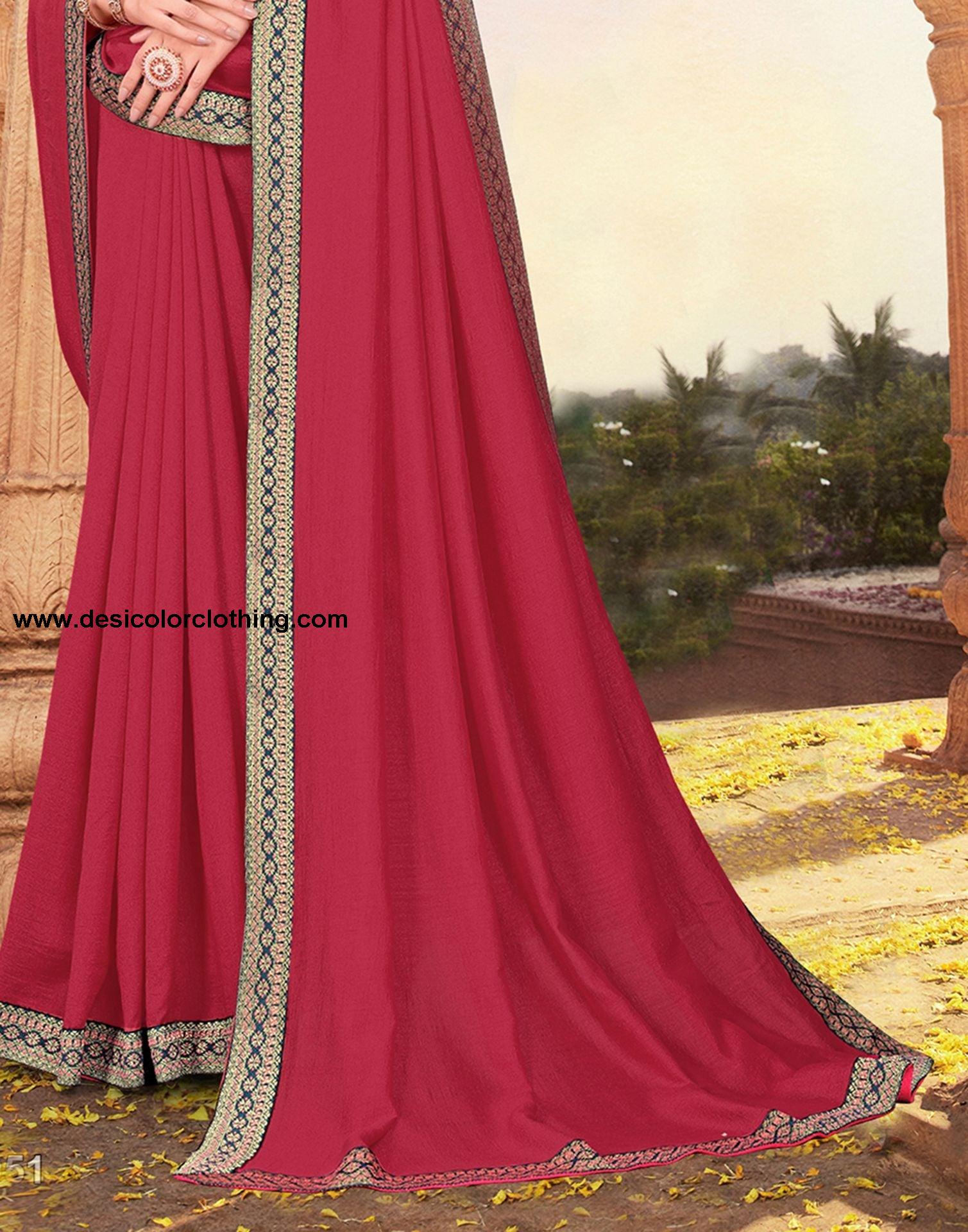 Blouse Color:Sea Blue Blouse Fabric:Art Silk Blouse Length:0.80 Mtr Blouse Work:Embroidery Saree Color:Pink Saree Fabric:Poly Silk(Vichitra Silk) Saree Length:5.50 Mtr Saree Work:Plain, Lace