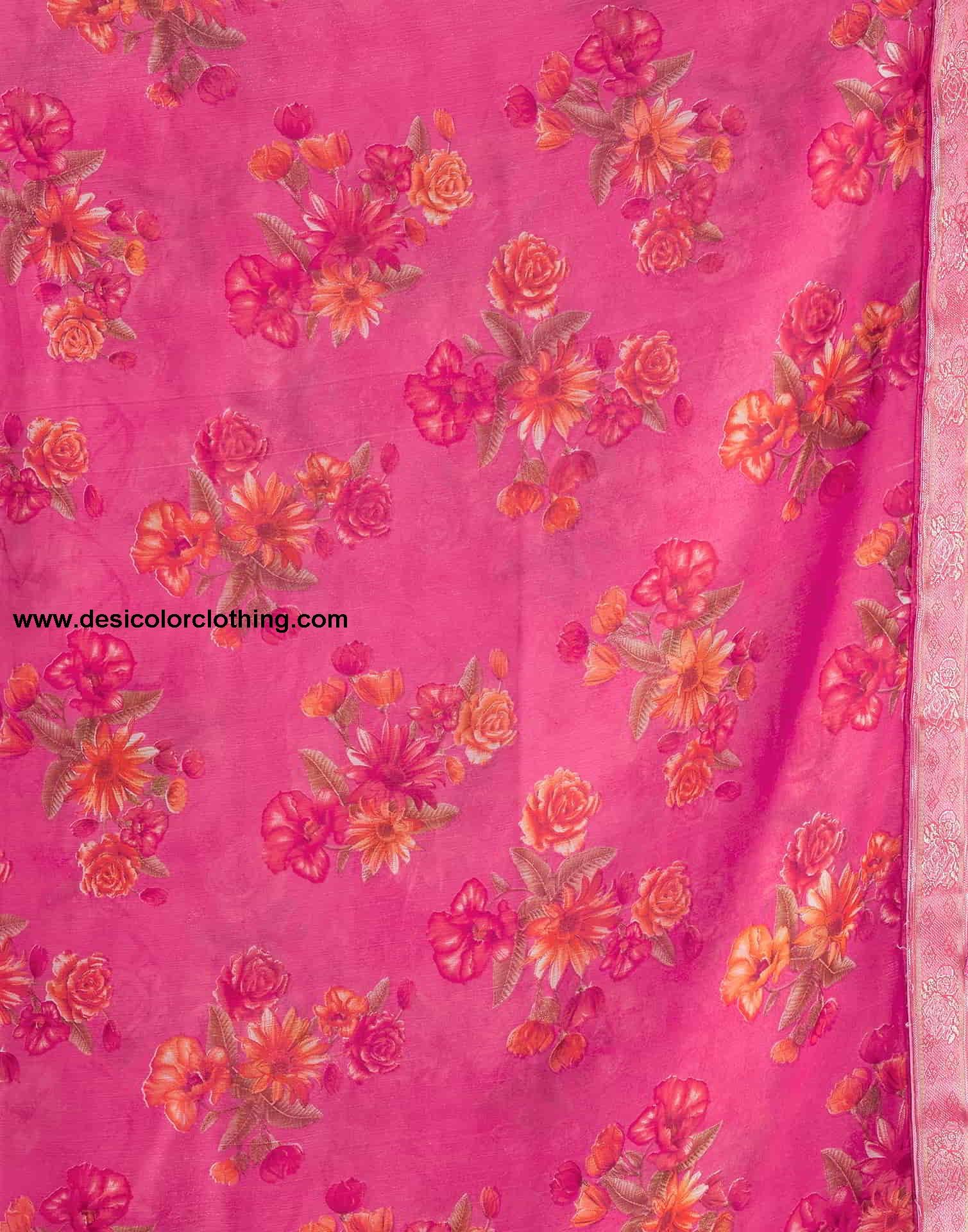 Blouse Color:Dark Pink Blouse Fabric:Bhagalpuri Silk Blouse Length:0.80 Mtr Blouse Work:Plain, Lace Saree Color:Pink, Multi Saree Fabric:Chiffon Saree Length:5.50 Mtr Saree Work:Floral Printed, Lace, Tassels Type:Printed
