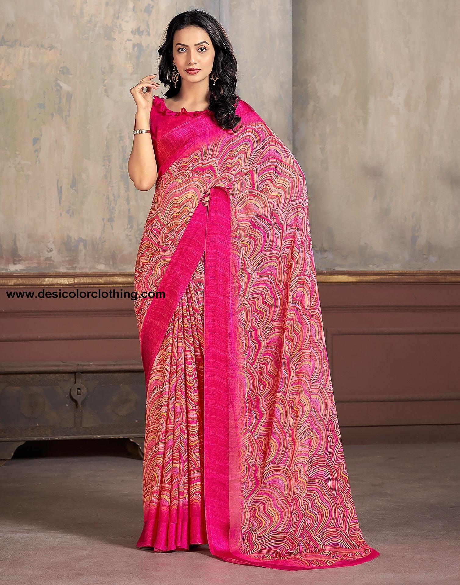 Blouse Color:Pink Blouse Fabric:Chiffon Blouse Length:0.80 Mtr Blouse Work:Printed Saree Color:Pink Saree Fabric:Chiffon Saree Length:5.50 Mtr Saree Work:Printed