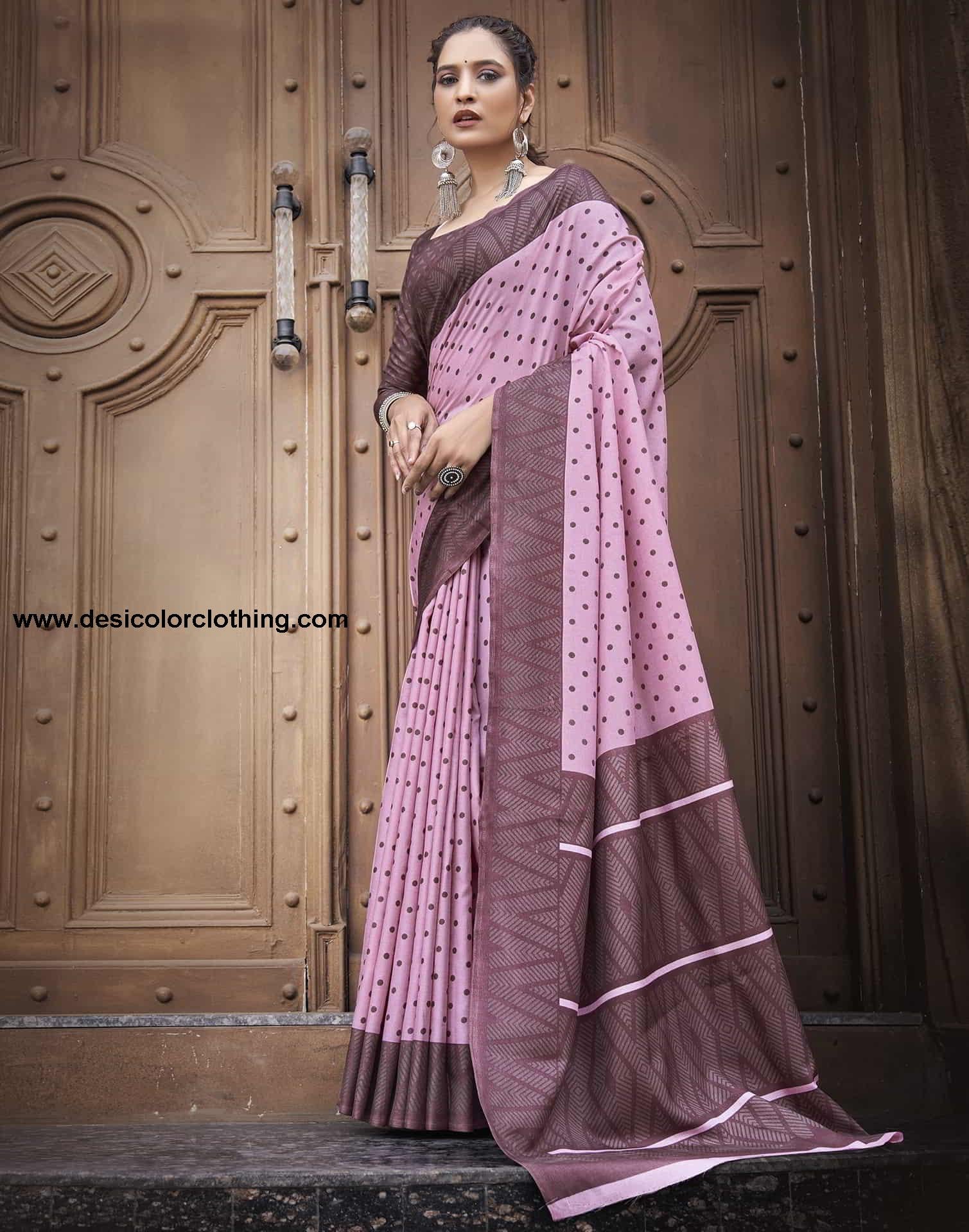 Blouse Color:Wine, Mauve Blouse Fabric:Dola Silk Blouse Length:0.80 Mtr Blouse Work:Geometric Printed Saree Color:Light Pink, Wine, Mauve Saree Fabric:Dola Silk Saree Length:5.50 Mtr Saree Work:Geometric Printed