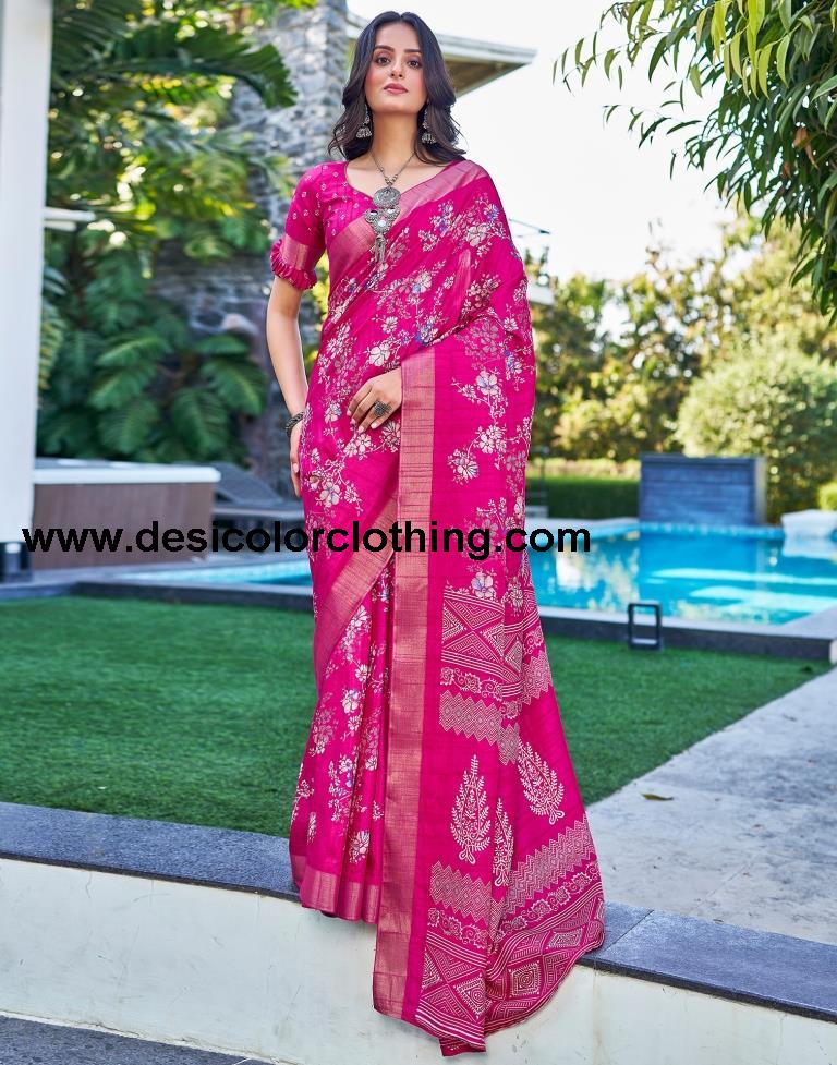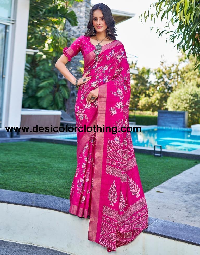 Pink Silk Printed Saree