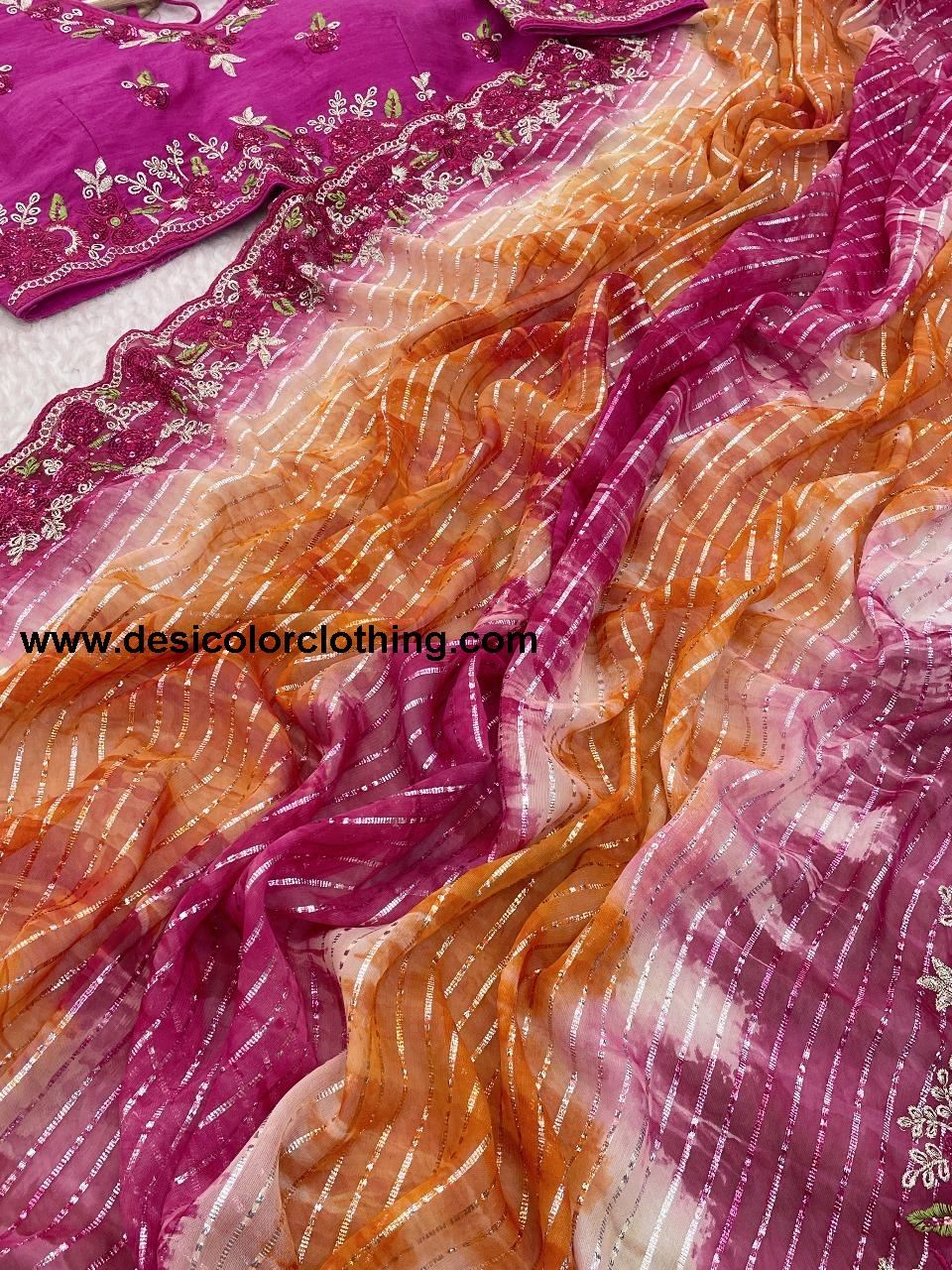 *Saree:- Pure Soft Georgette Sarees with Silver Weaving lining Nd Prisam Print With Heavy Embroidery Threads Sequence Ton to Ton work border aarco*
