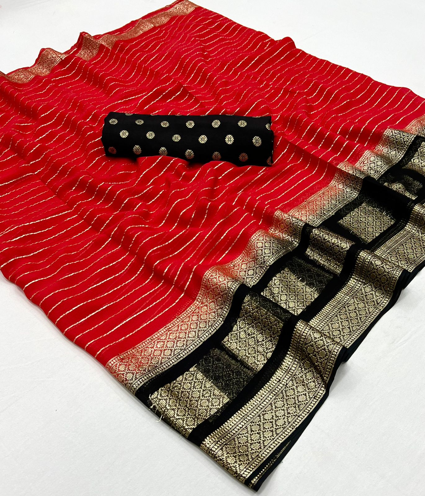 Pure Viscose Georgette Saree With Fancy Zari & Fancy Jacquard Border With Fancy Dola Silk Jecquard Blouse