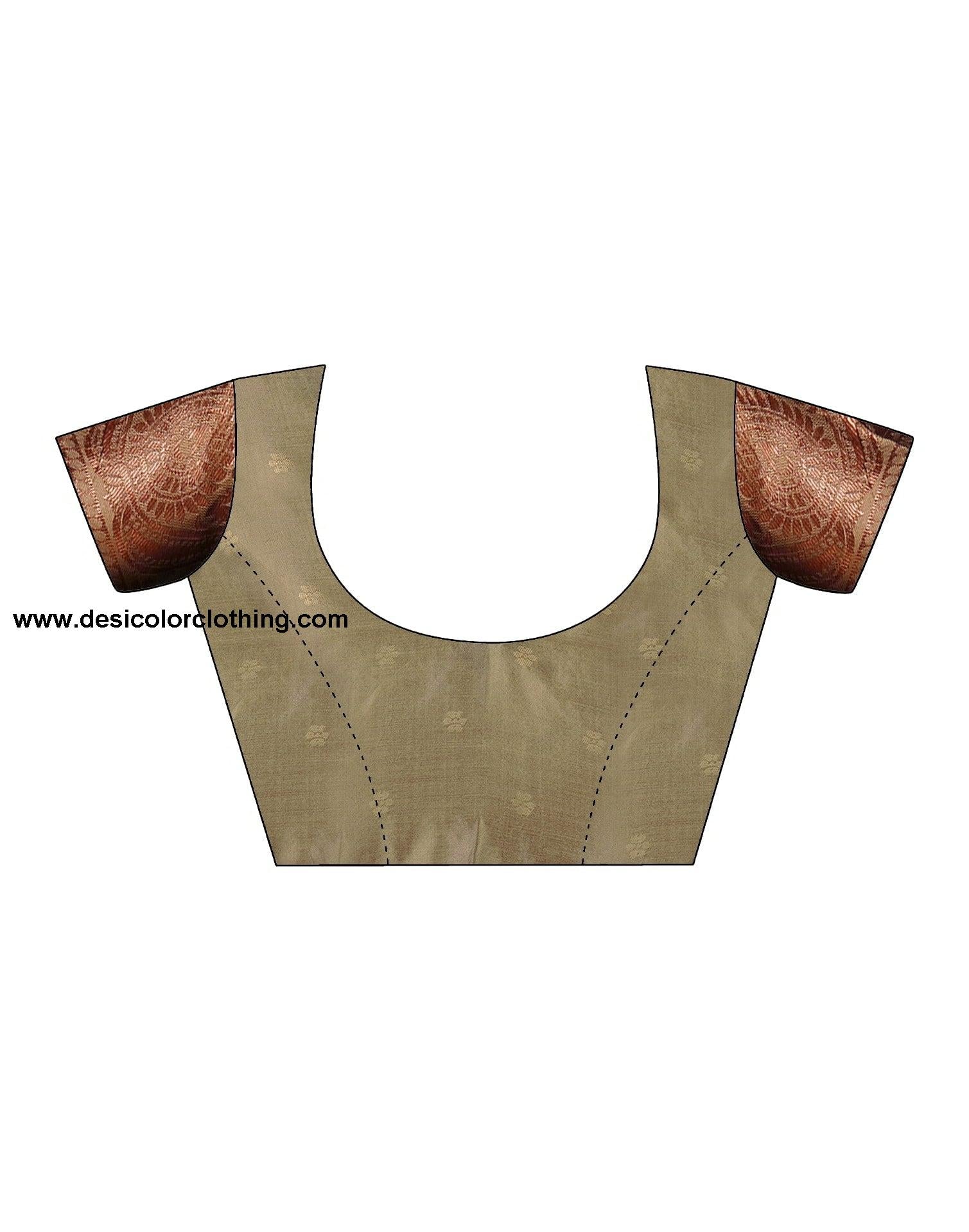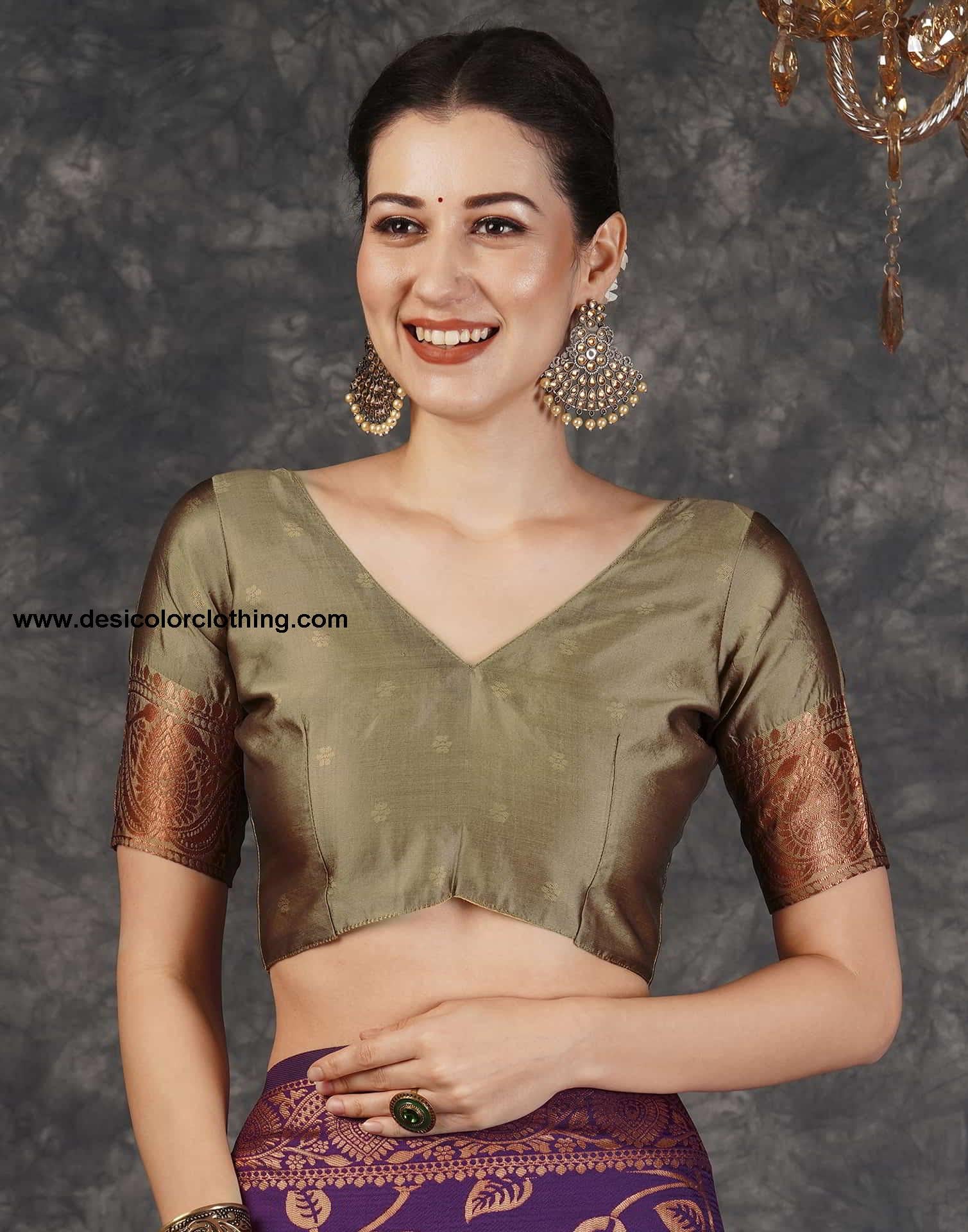 Blouse Color:Khaki Blouse Fabric:Silk Blouse Length:0.80 Mtr Blouse Work:Plain, Woven Saree Color:Dark Purple, Khaki, Golden Saree Fabric:Silk Saree Length:5.50 Mtr Saree Work:Woven, Tassels Type:Banarasi