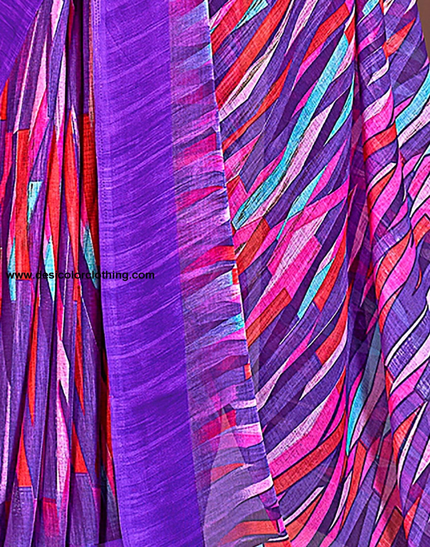 Blouse Color:Purple Blouse Fabric:Chiffon Blouse Length:0.80 Mtr Blouse Work:Printed Saree Color:Purple Saree Fabric:Chiffon Saree Length:5.50 Mtr Saree Work:Printed