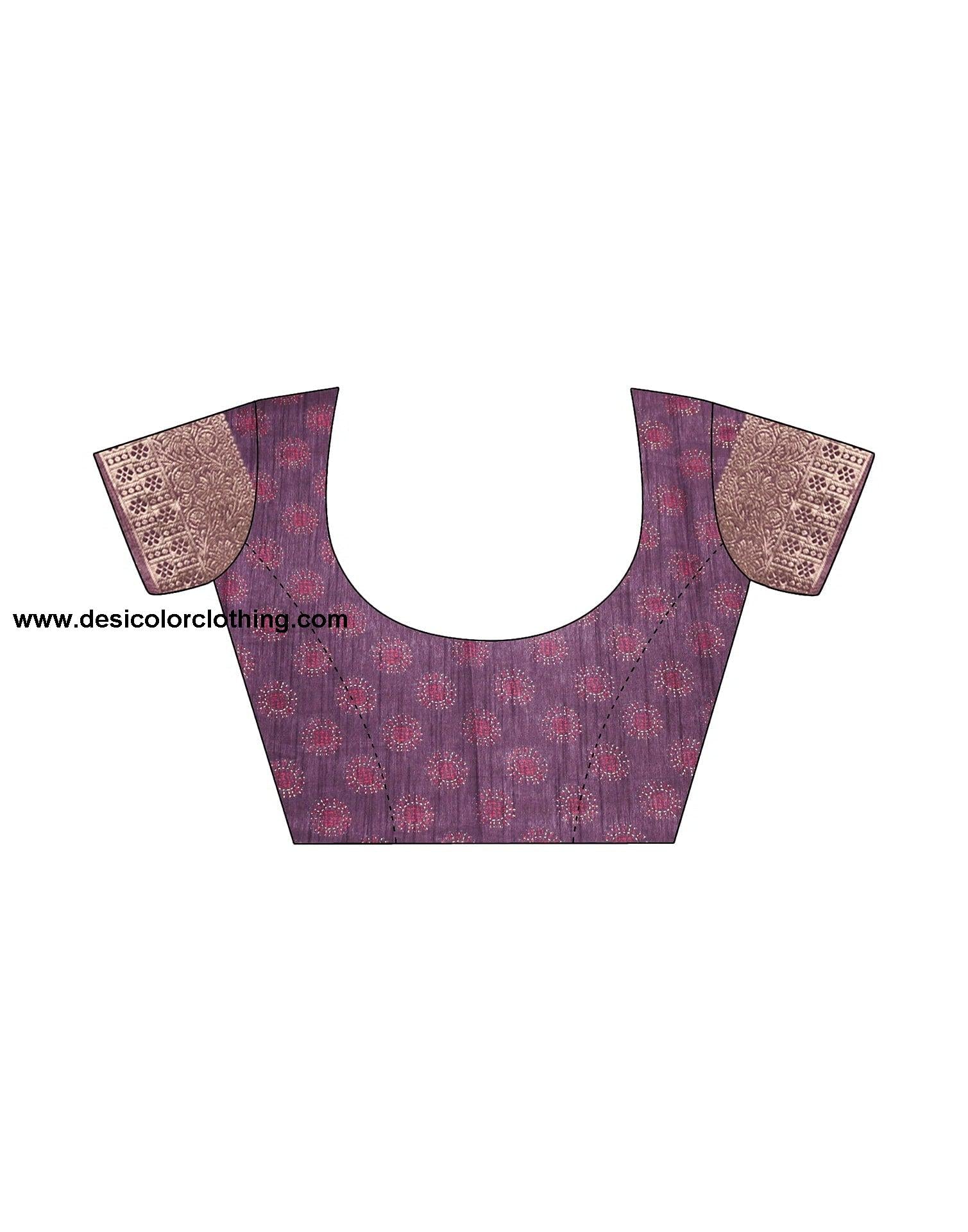 Blouse Color:Dusty Purple, Red, Golden Blouse Fabric:Dola Silk Blouse Length:0.80 Mtr Blouse Work:Printed, Foil Print, Woven Border Saree Color:Dusty Purple, Multi, Golden Saree Fabric:Dola Silk Saree Length:5.50 Mtr Saree Work:Floral Printed ( Kantha ), Woven Border, Foil Printed