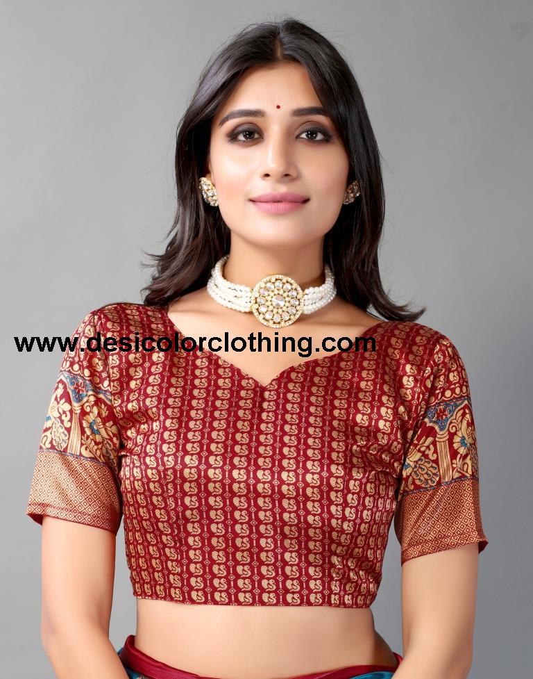 Blouse Color:Maroon, Multi Blouse Fabric:Poly Silk Blouse Length:0.70 Mtr Blouse Work:Printed Saree Color:Rama Blue Saree Fabric:Poly Silk Saree Length:5.30 Mtr Saree Work:Printed