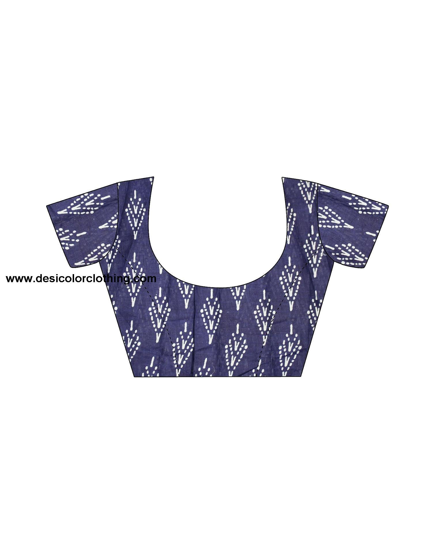 Blouse Color:Navy Blue, White Blouse Fabric:Cotton Blouse Length:0.70 Mtr Blouse Work:Printed Saree Color:Rama Green, Navy Blue Saree Fabric:Cotton Saree Length:5.50 Mtr Saree Work:Printed (Ready To Wear)