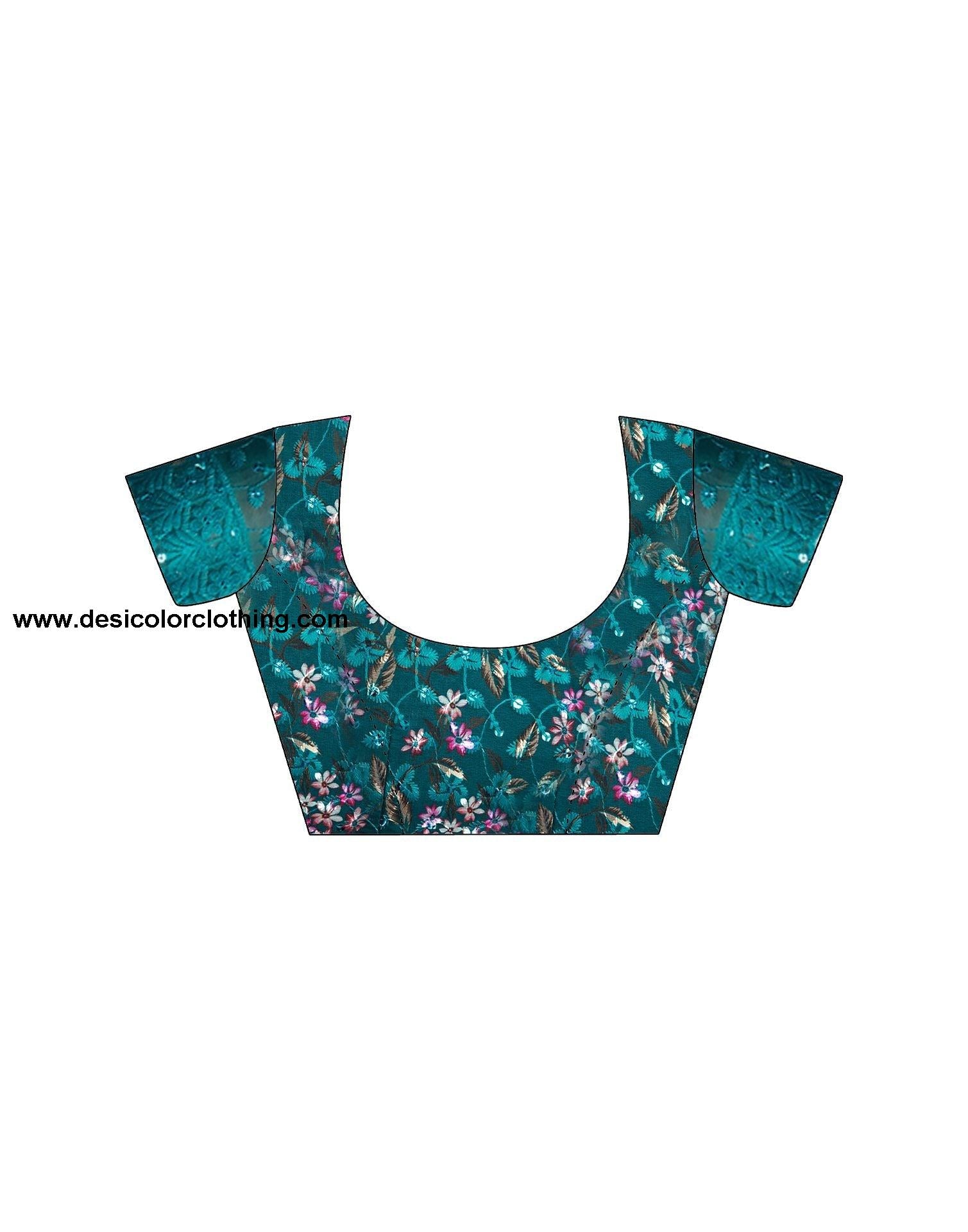 Blouse Color:Teal Blue, Multi Blouse Fabric:Georgette Blouse Length:0.80 Mtr Blouse Work:Printed Saree Color:Rama Saree Fabric:Georgette Saree Length:0.80 Mtr Saree Work:Plain