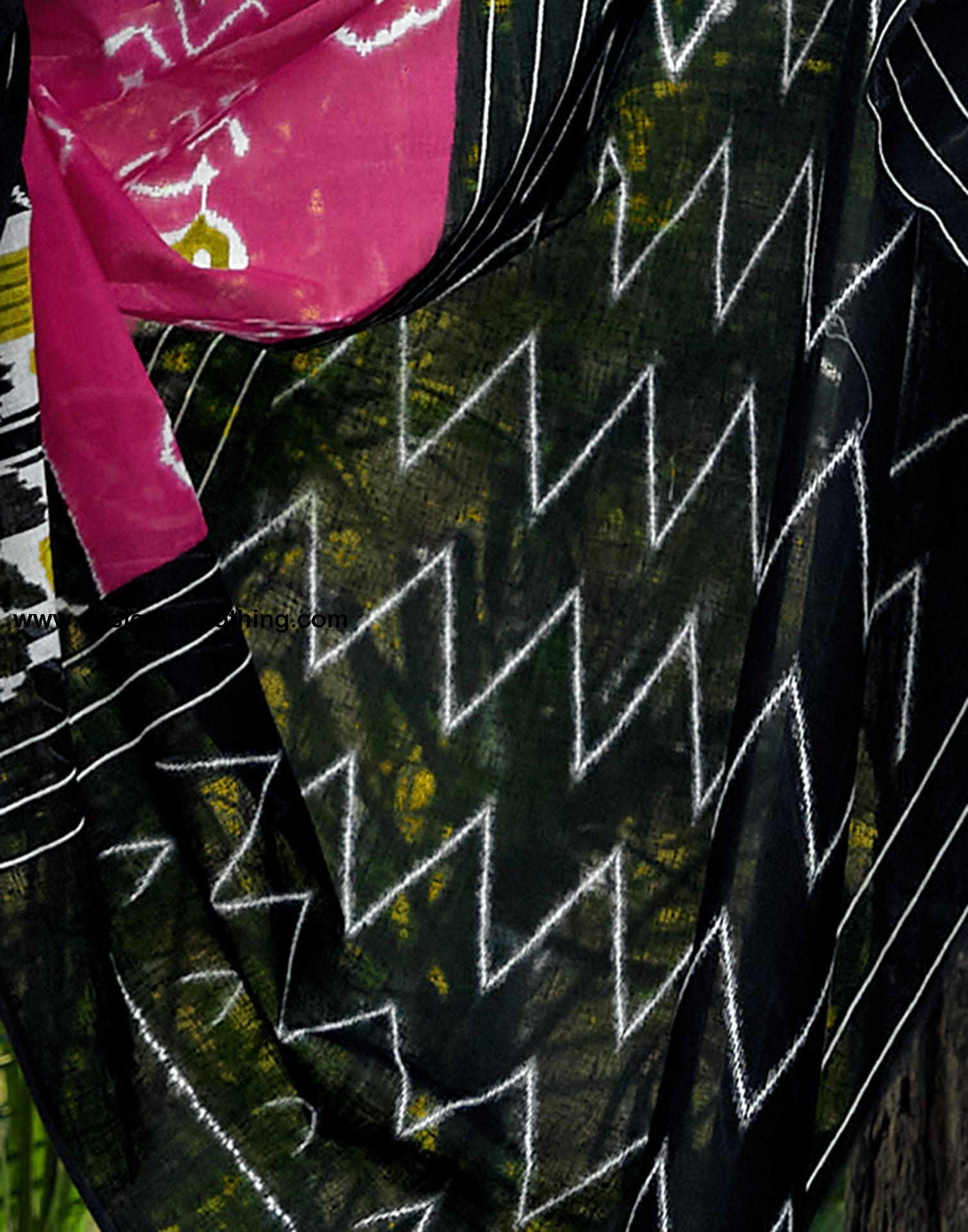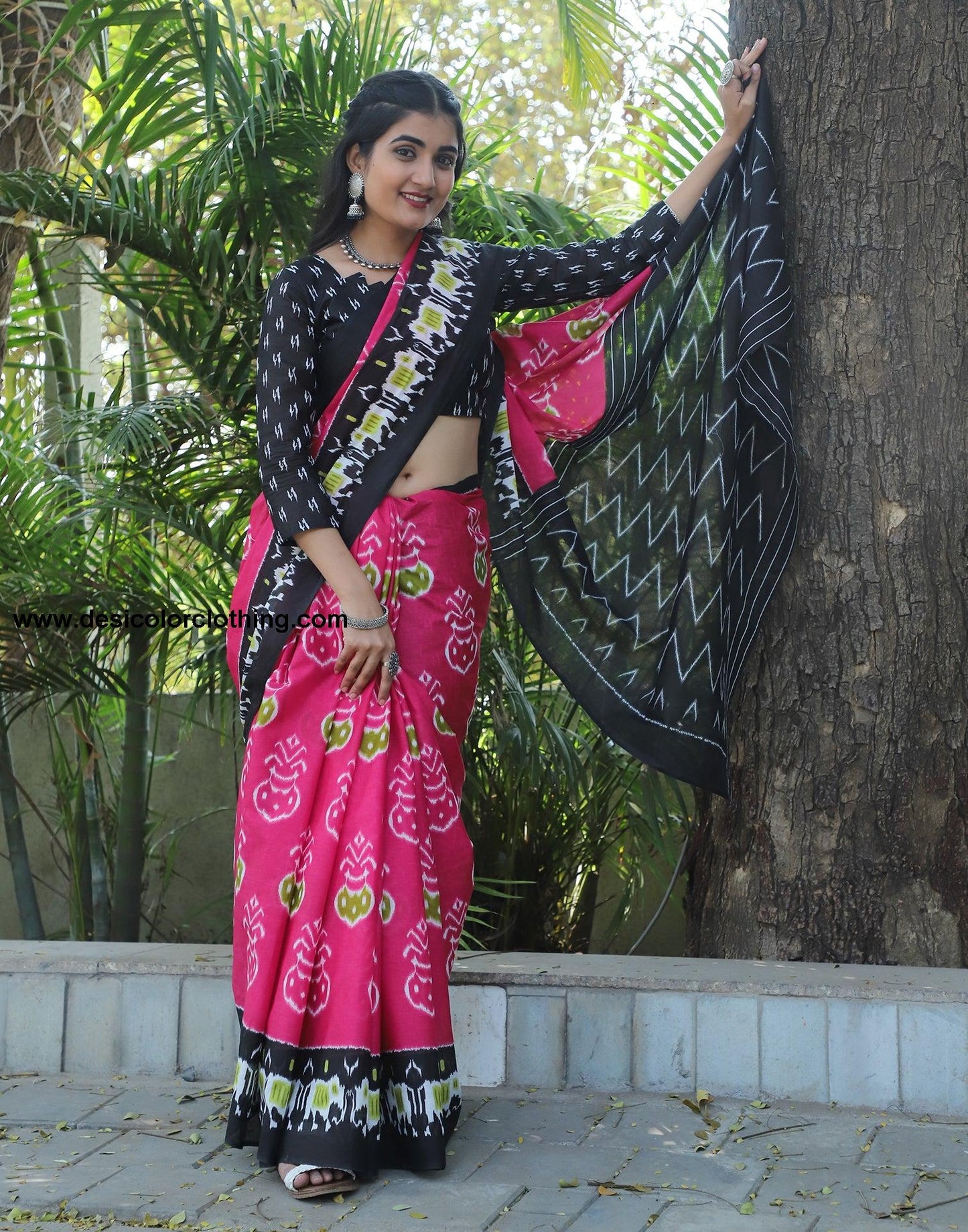 Blouse Color:Black, White Blouse Fabric:Printed Blouse Length:0.80 Mtr Blouse Work:Printed Saree Color:Rani Pink, Black Saree Fabric:Cotton Saree Length:5.50 Mtr Saree Work:Printed