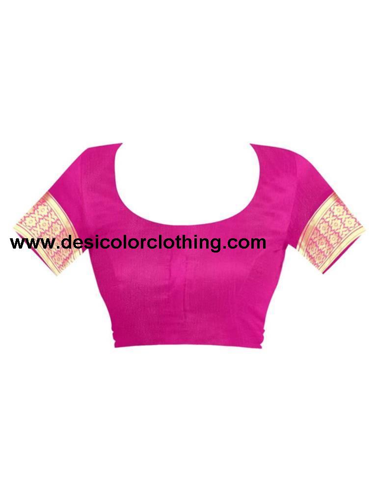 Blouse Color:Rani Pink Blouse Fabric:Polysilk Blouse Length:0.80 Mtr Blouse Work:Jacquard Border, Self Woven Saree Color:Rani Pink, Gold Saree Fabric:Polysilk Saree Work:Jacquard Type:Banarasi