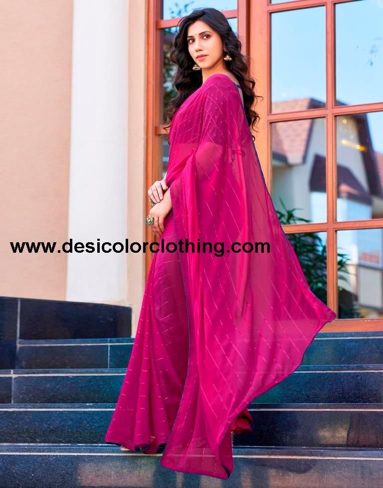 Blouse Color:Navy Blue Blouse Fabric:Silk Blouse Length:0.80 Mtr Blouse Work:Plain Saree Color:Rani Pink Saree Fabric:Georgette Saree Length:0.80 Mtr Saree Work:Plain