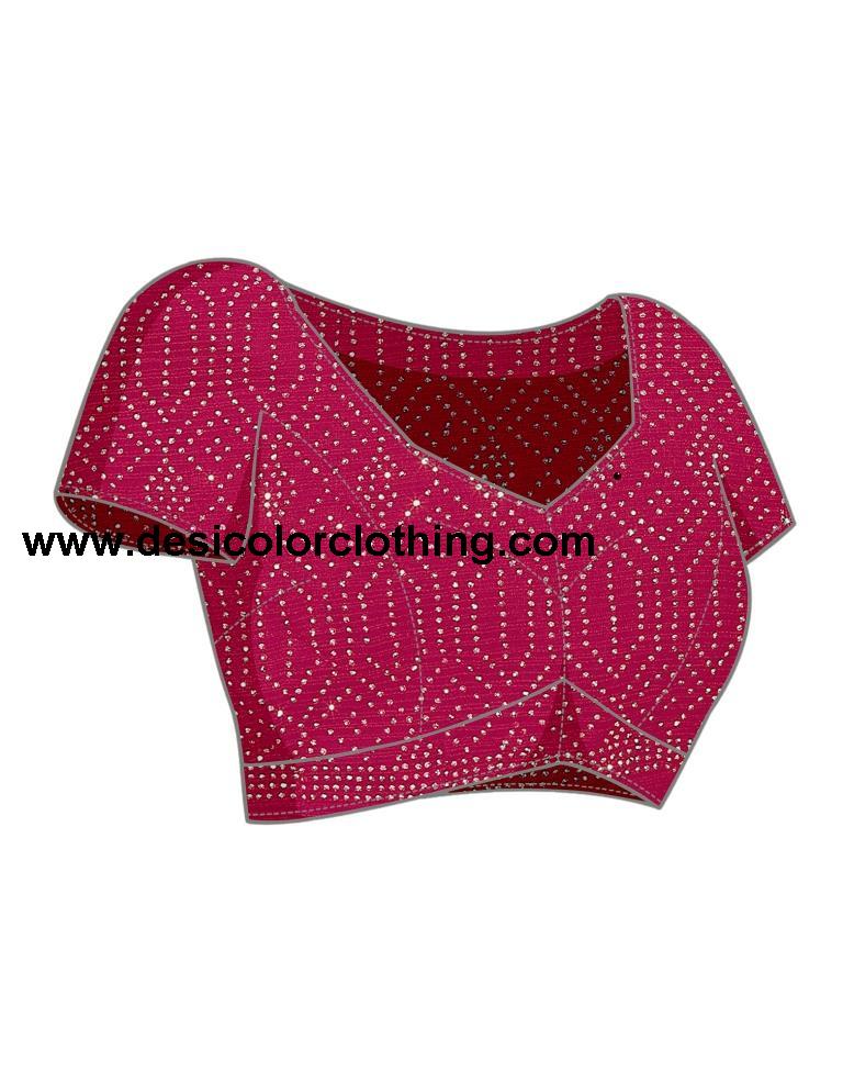 Blouse Color:Rani Pink Blouse Fabric:Georgette Blouse Length:0.70 Mtr Blouse Work:Dyed, Hot Fixing Saree Color:Rani Pink Saree Fabric:Georgette Saree Length:5.30 Mtr Saree Work:Dyed, Hot Fixing