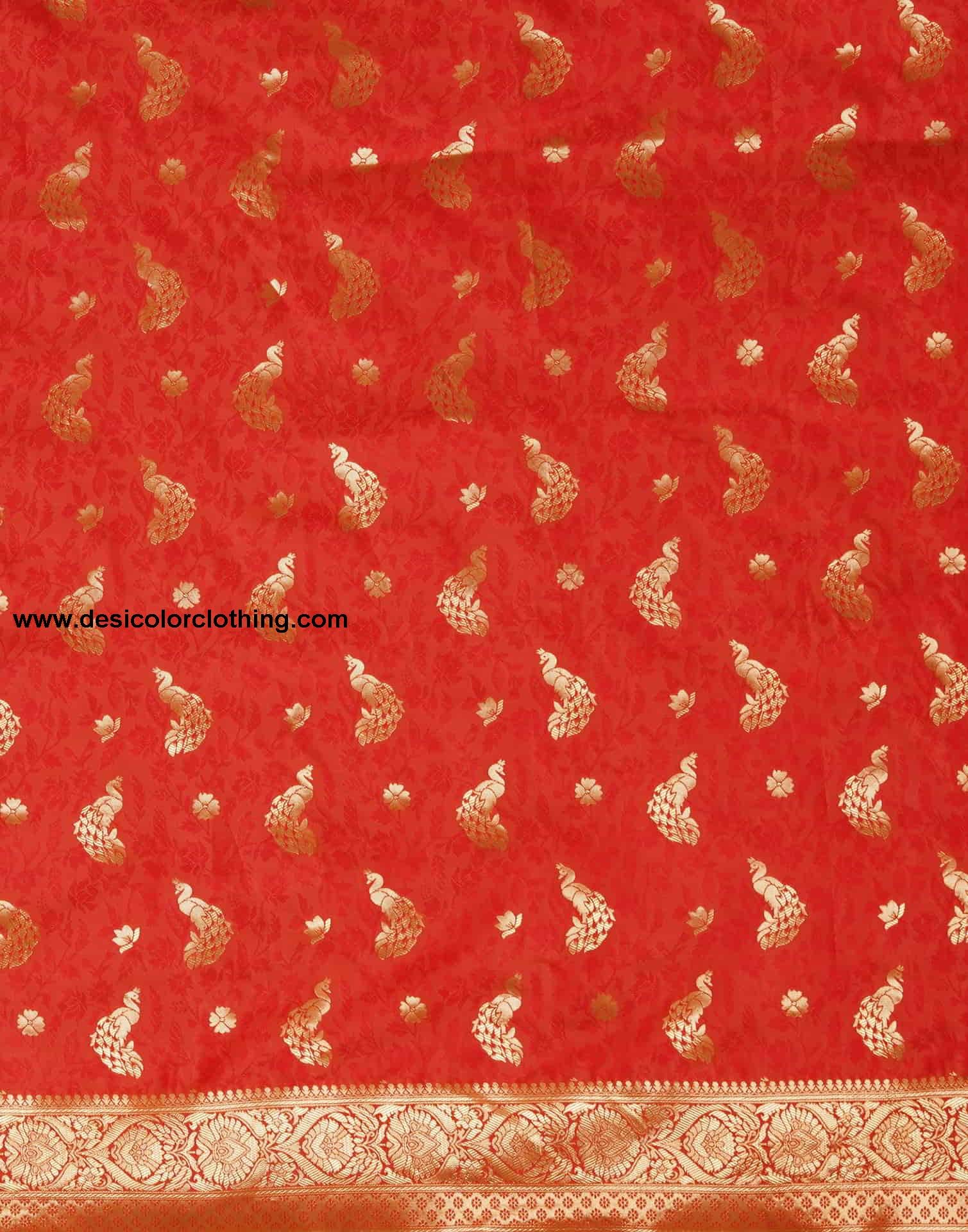 Blouse Color:Red Blouse Fabric:Silk Blouse Length:0.80 Mtr Blouse Work:Woven Border (Dual Tone) Saree Color:Red, Golden Saree Fabric:Silk Saree Length:5.50 Mtr Saree Work:Woven ( Dual Tone ) Type:Banarasi