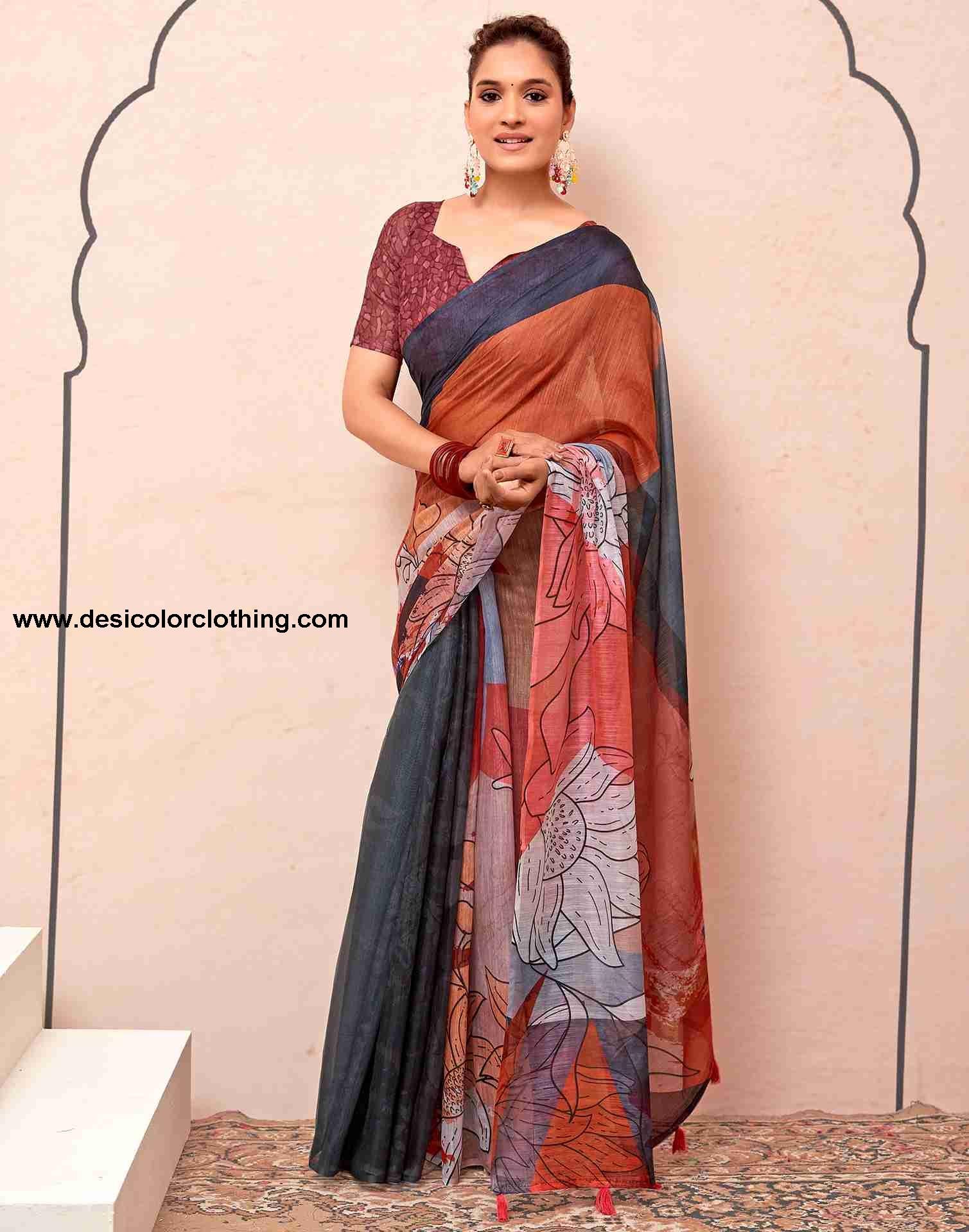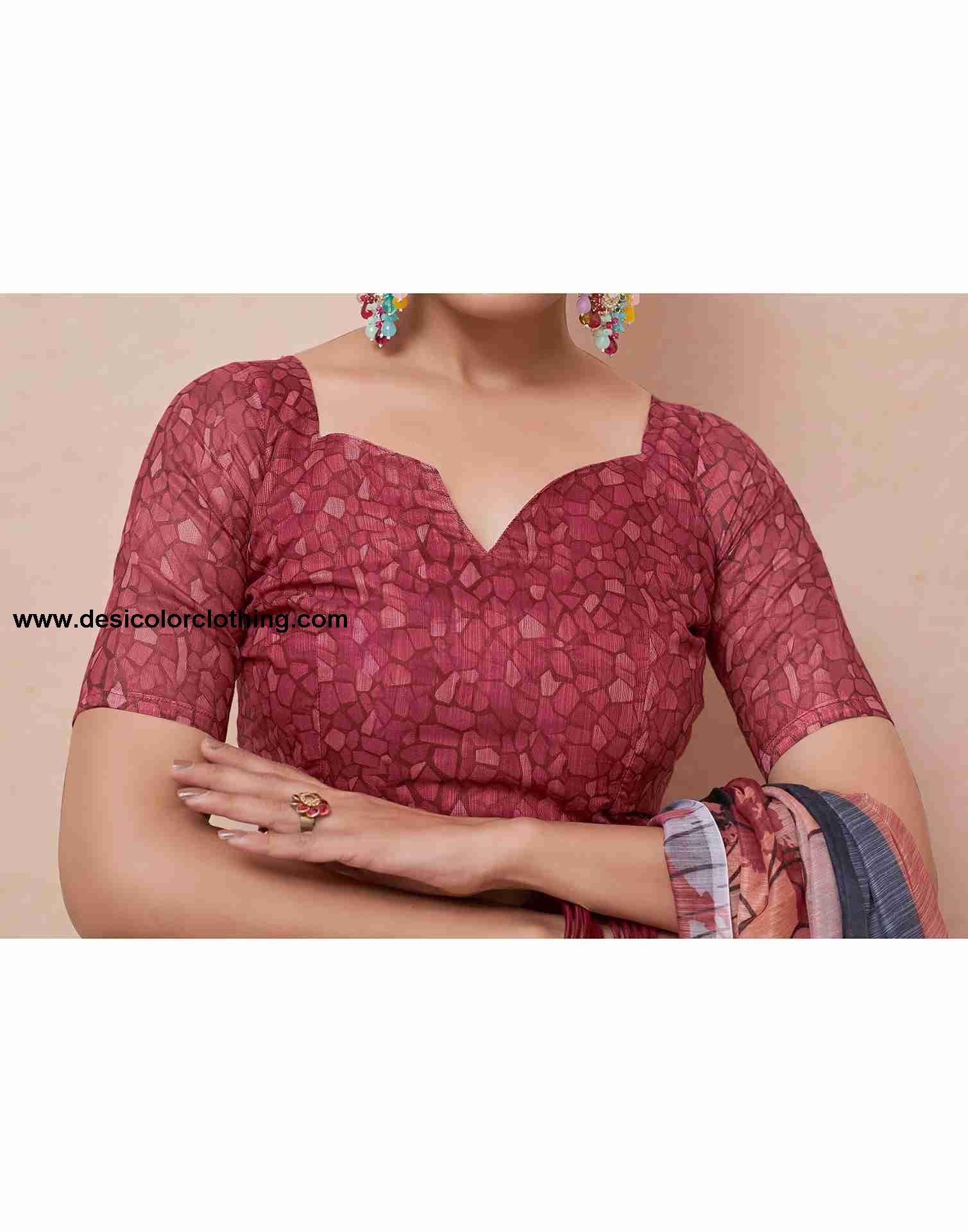Blouse Color:Maroon Blouse Fabric:Cotton Silk Blouse Length:0.70 Mtr Blouse Work:Geometric Printed Saree Color:Red, Multi Saree Fabric:Cotton Silk Saree Length:5.30 Mtr Saree Work:Floral Printed, Tassels
