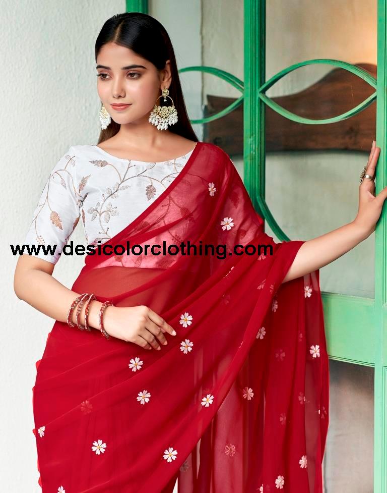 Red Georgette Embroidery Saree