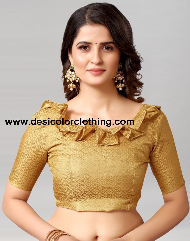 Blouse Color:Golden Blouse Fabric:Brocade Blouse Length:0.70 Mtr Blouse Work:Jacquard Saree Color:Red Saree Fabric:Chiffon Saree Length:5.50 Mtr Saree Work:Plain, Woven Jari Border