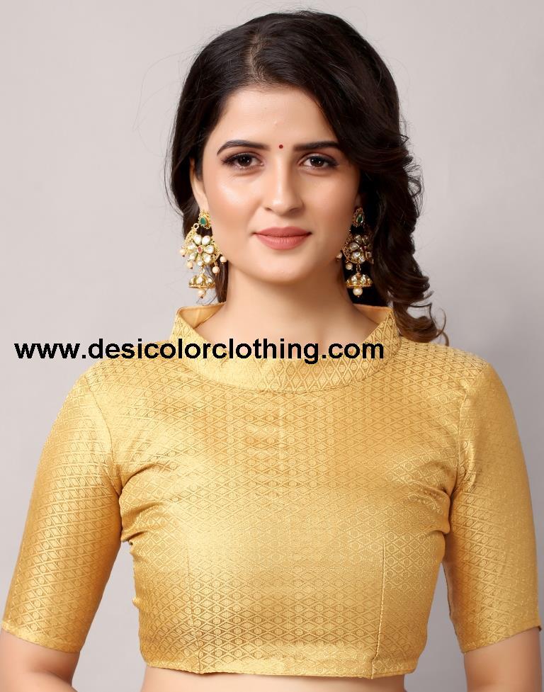 Blouse Color:Golden Blouse Fabric:Brocade Blouse Length:0.70 Mtr Blouse Work:Jacquard Saree Color:Red Saree Fabric:Chiffon Saree Length:5.50 Mtr Saree Work:Woven Jari Stripes, Plain