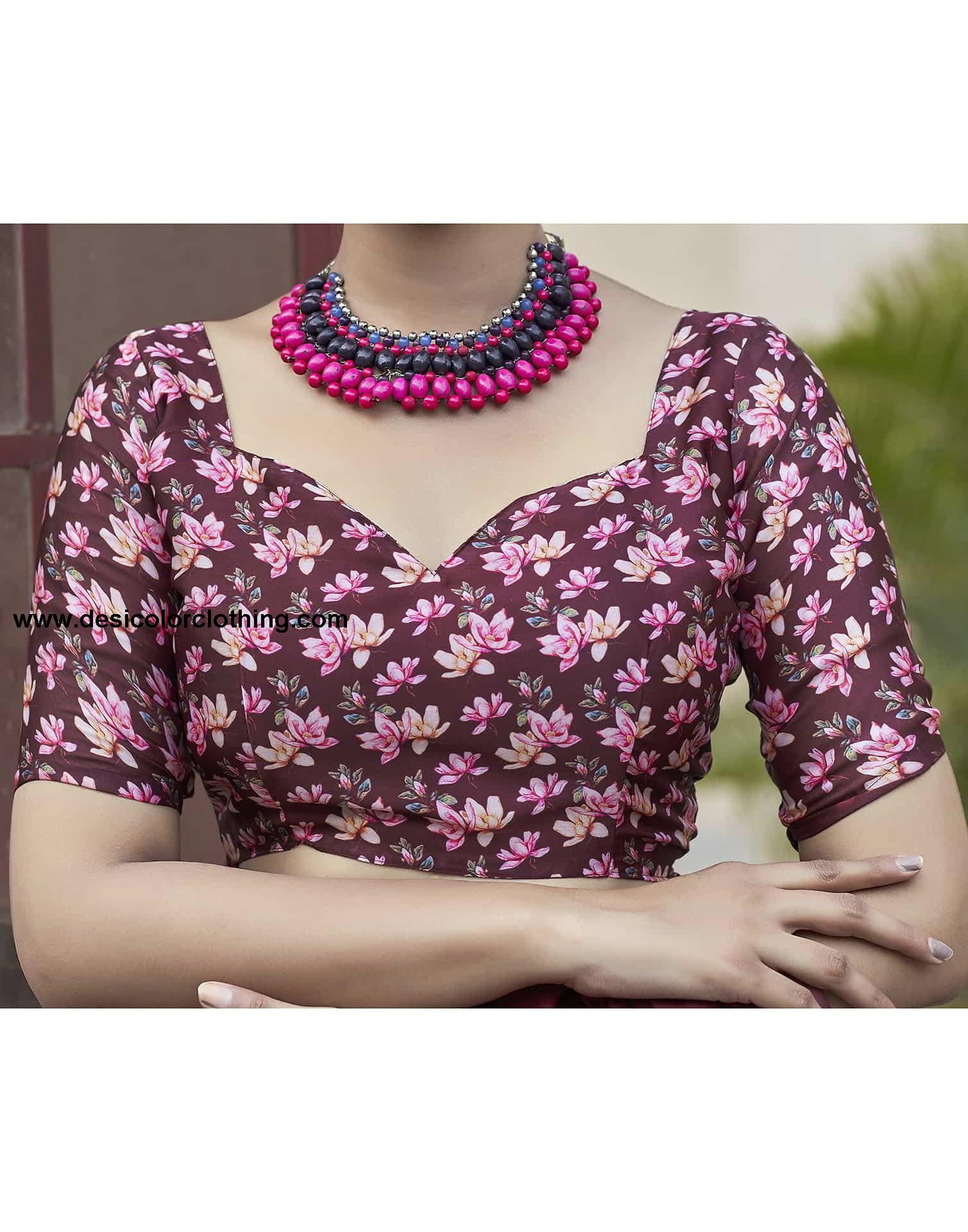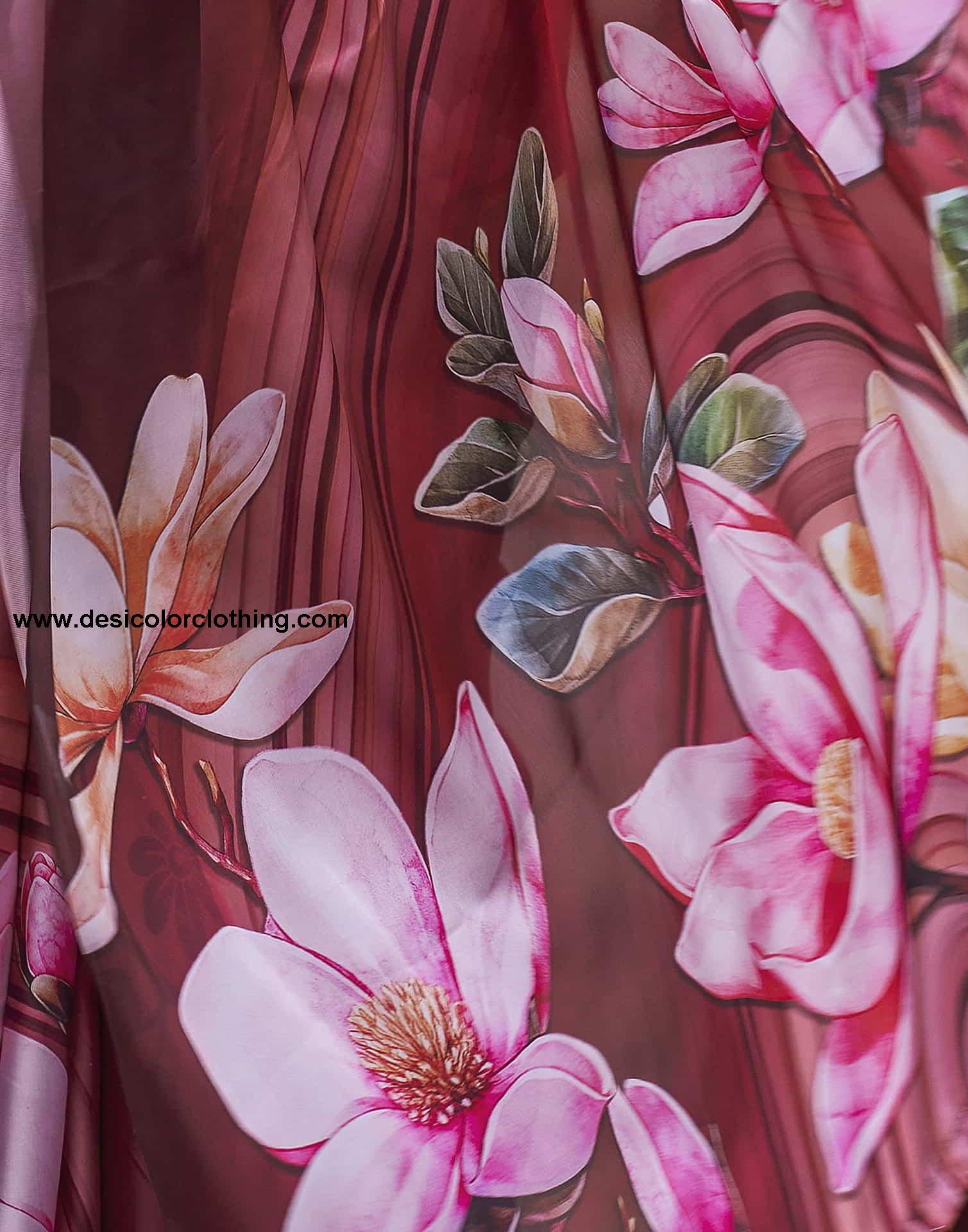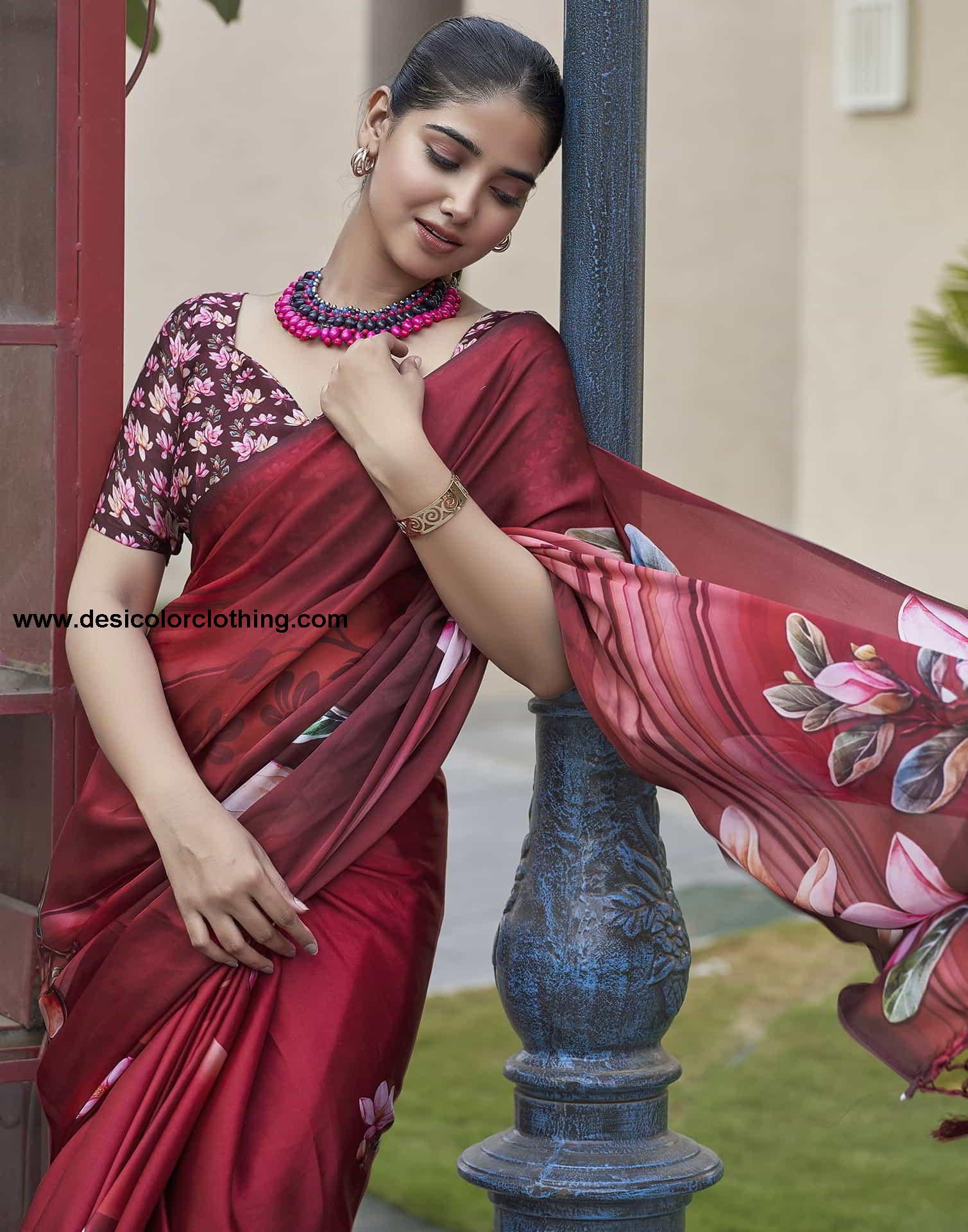 Blouse Color:Dark Red, Multi Blouse Fabric:Viscose Satin Blouse Length:0.80 Mtr Blouse Work:Printed Saree Color:Dark Red, Multi Saree Fabric:Viscose Satin Saree Length:5.50 Mtr Saree Work:Floral Printed, Tassels Type:Printed