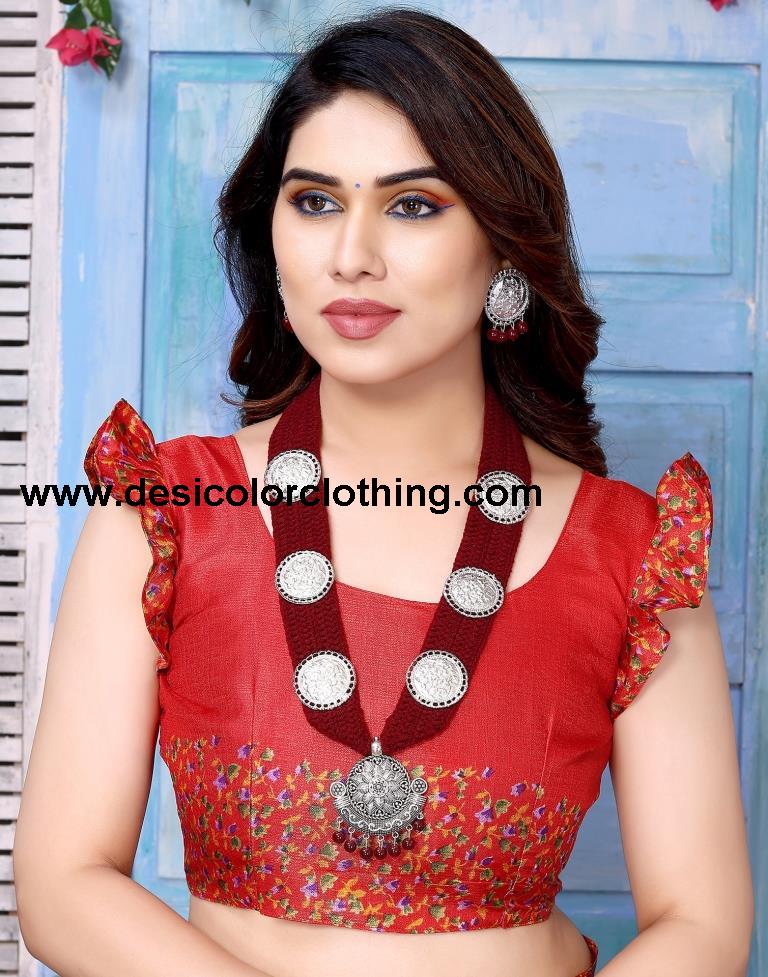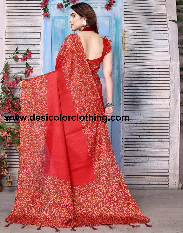 Blouse Color:Red Blouse Fabric:Khadi Silk Blouse Length:0.80 Mtr Blouse Work:Printed Saree Color:Red, Multicoloured Saree Fabric:Khadi Silk Saree Length:5.40 Mtr Saree Work:Floral Printed, Tassel