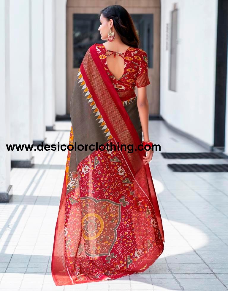 Blouse Color:Red, Multi Blouse Fabric:Silk Blouse Length:0.80 Mtr Blouse Work:Printed, Foil Print Saree Color:Red, Multicoloured Saree Fabric:Silk Saree Length:5.50 Mtr Saree Work:Printed, Foil Print