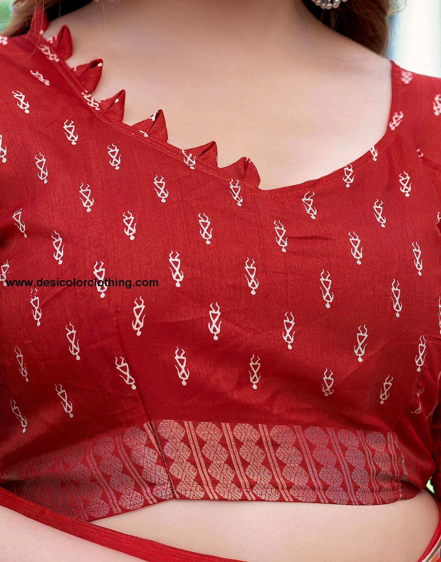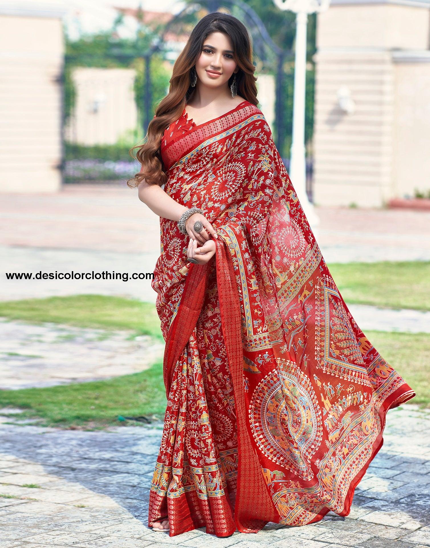 Red Silk Printed Saree